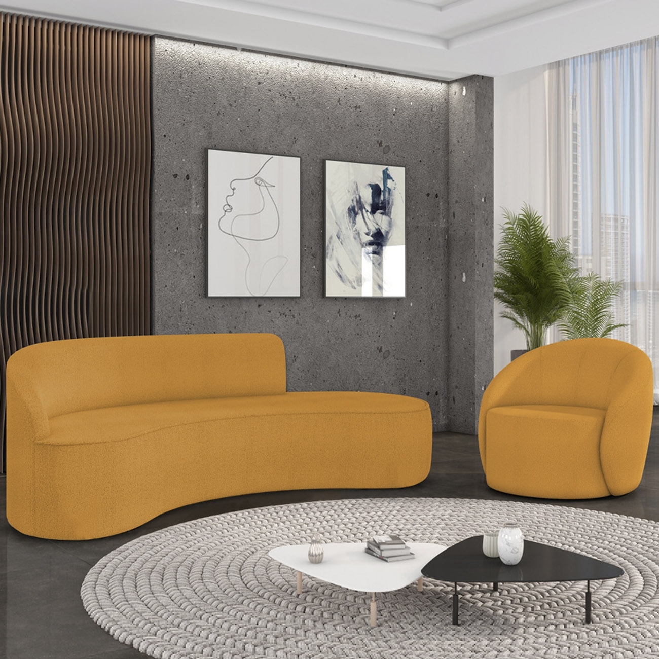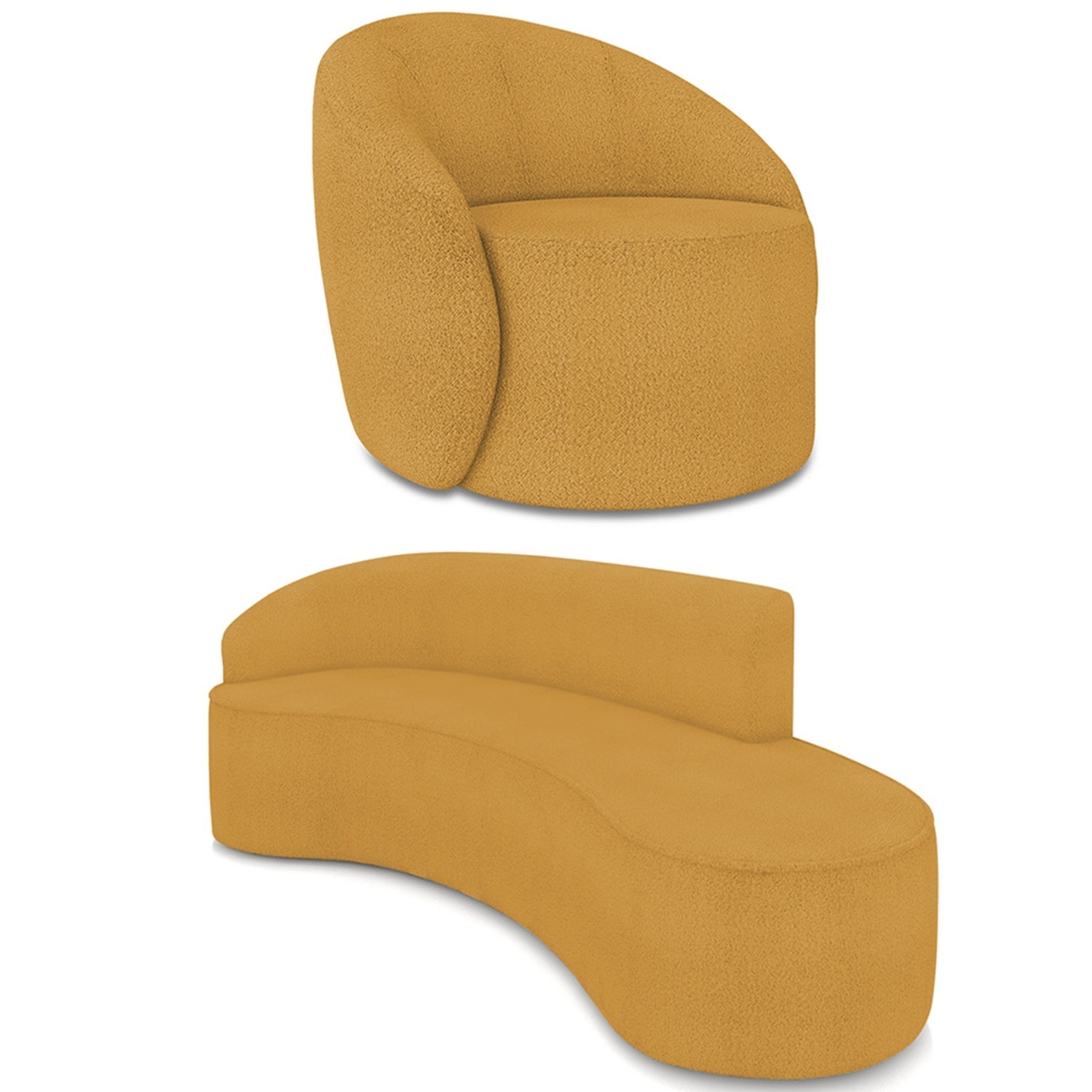 Sofá 4 Lugares 220cm Wendi e Poltrona Steve Boucle Mostarda I01 - Mpozenato
