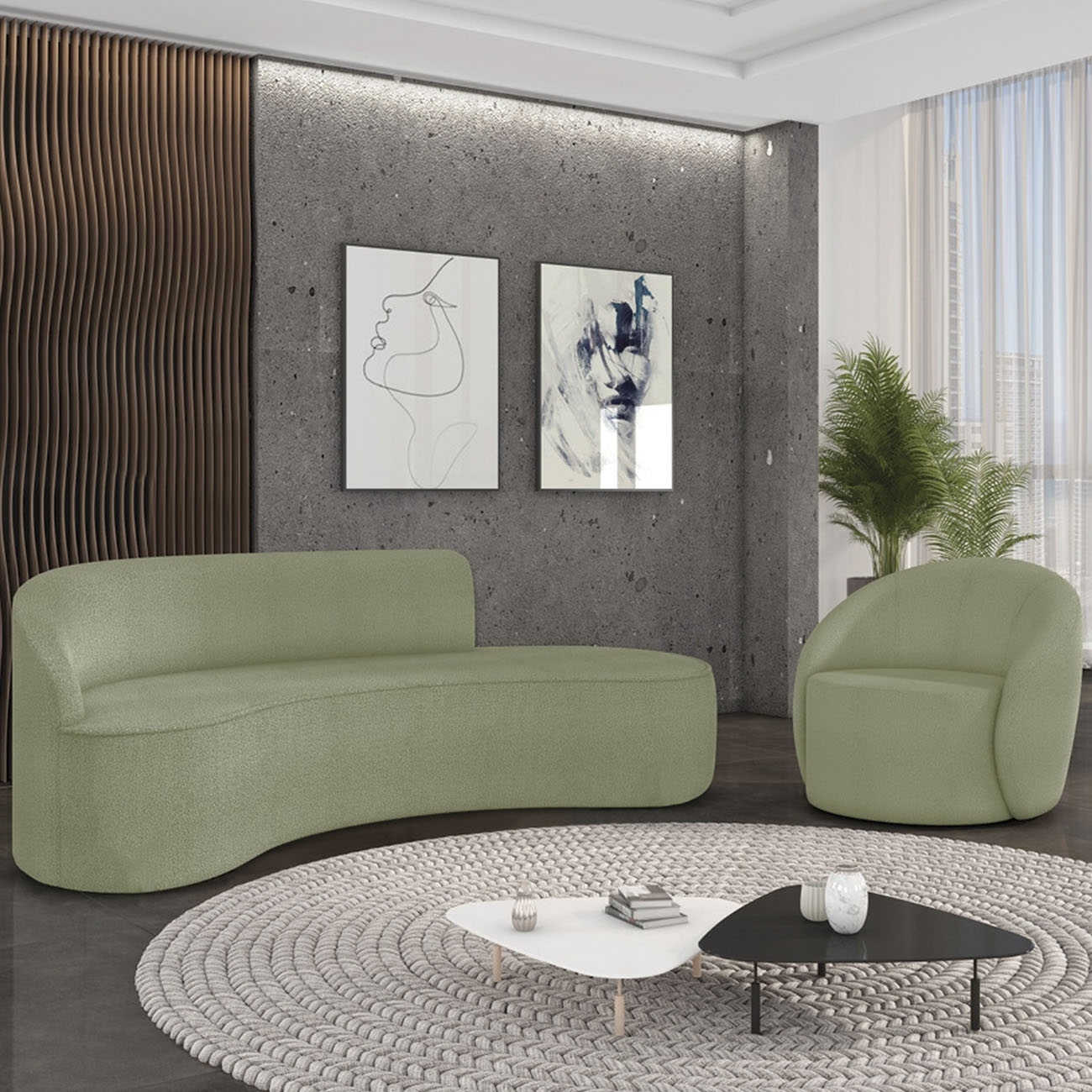 Sofá 4 Lugares 220cm Wendi e Poltrona Steve Boucle Pistache I01 - Mpozenato