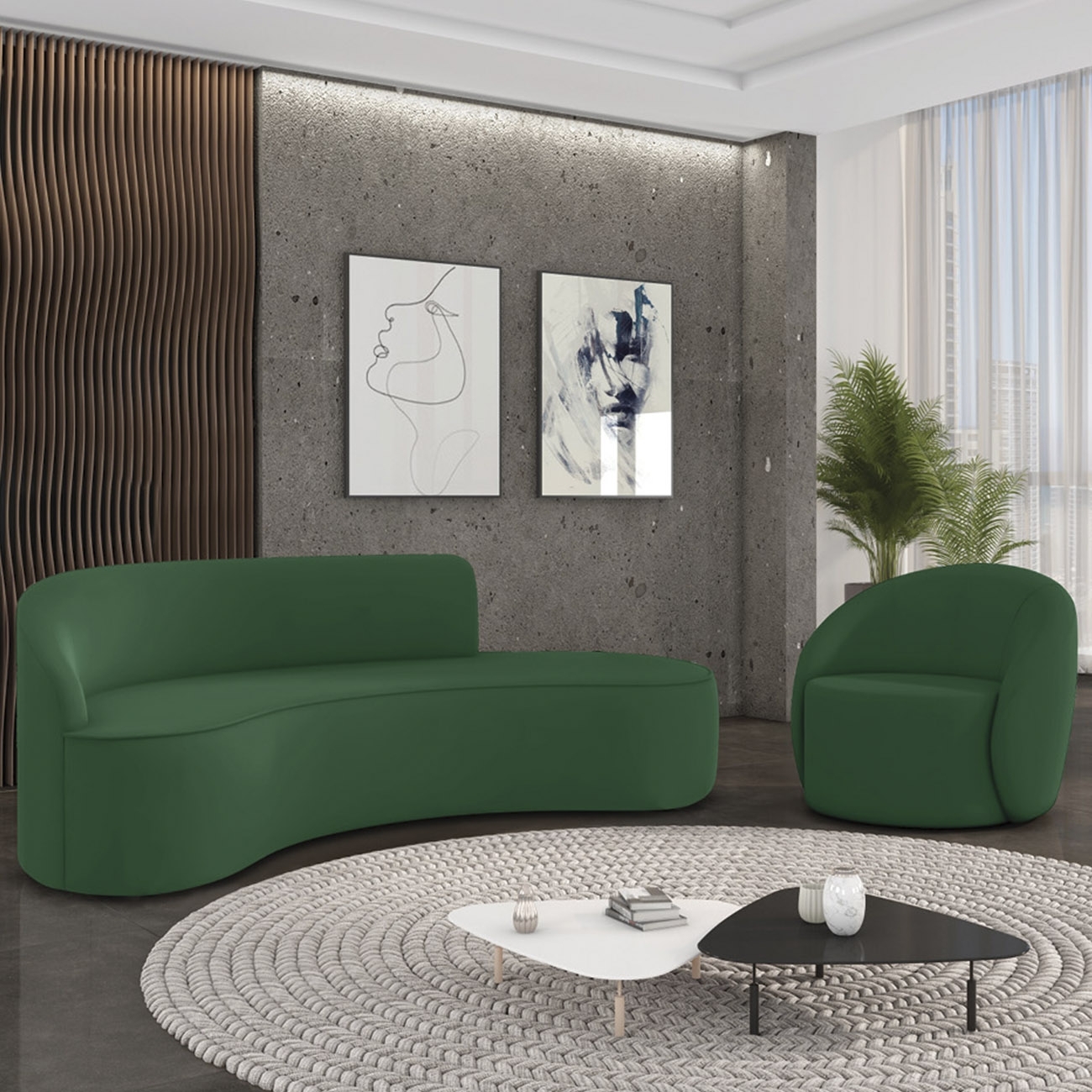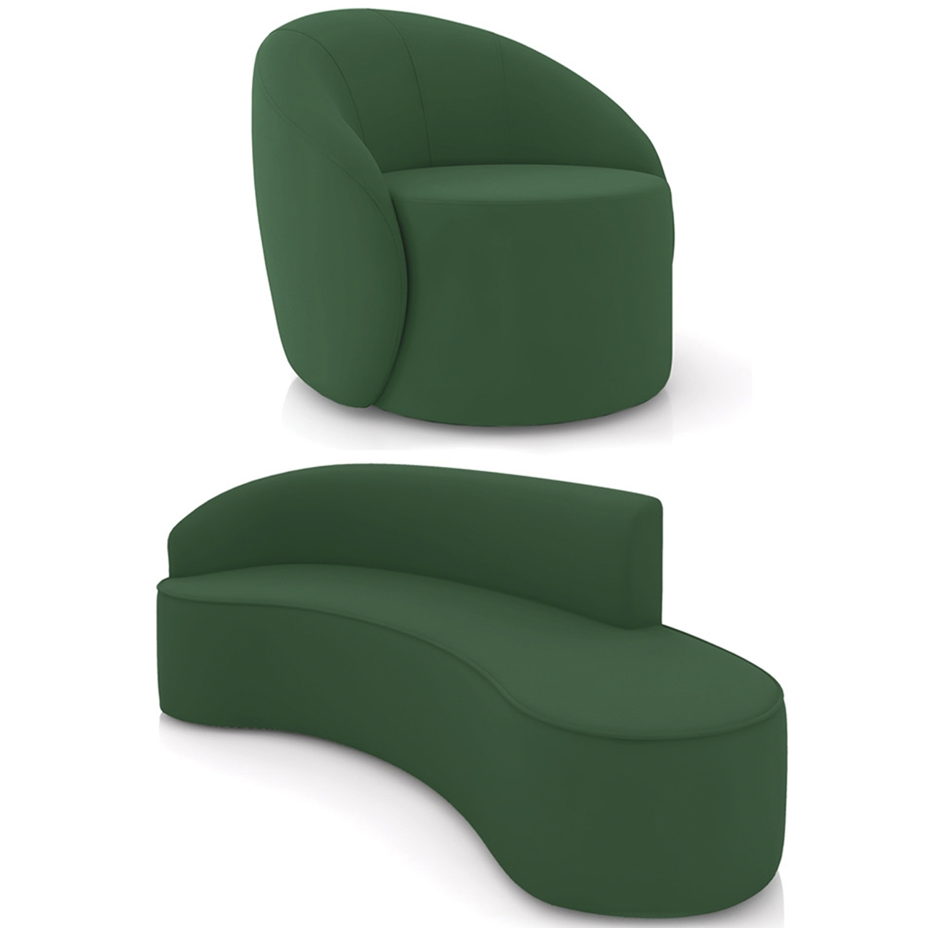 Sofá 4 Lugares 220cm Wendi e Poltrona Steve Veludo Verde I01 - Mpozenato