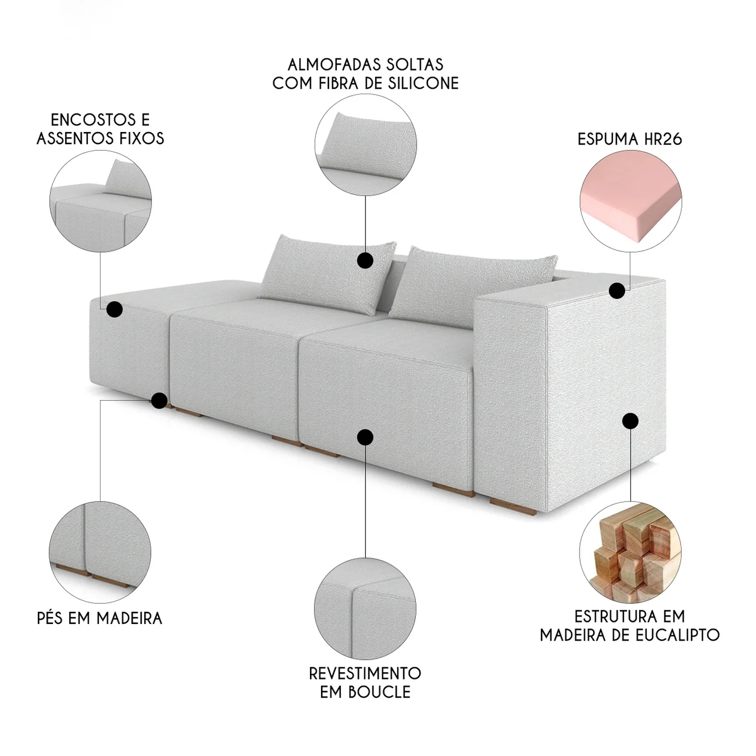 - Almofadas soltas com fibra de silicone.