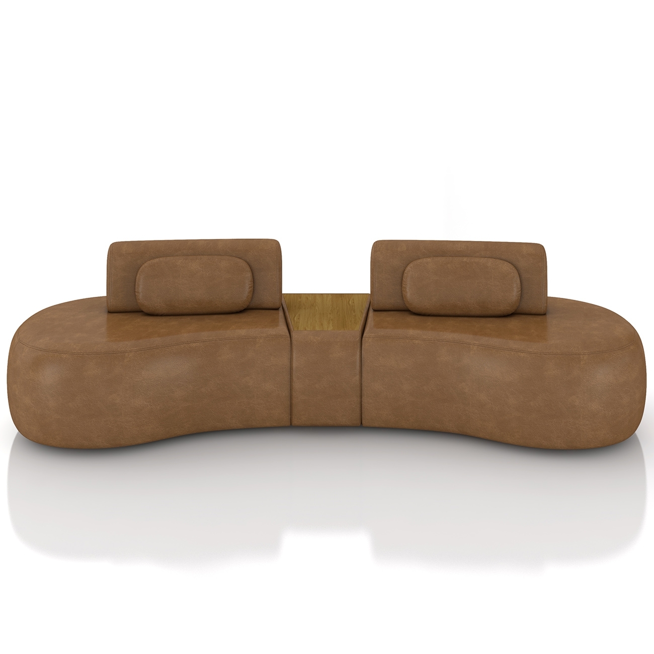 Sofá 4 Lugares 285cm Orgânico Com Mesa Mellanie Sintético Caramelo Z32 - Mpozenato