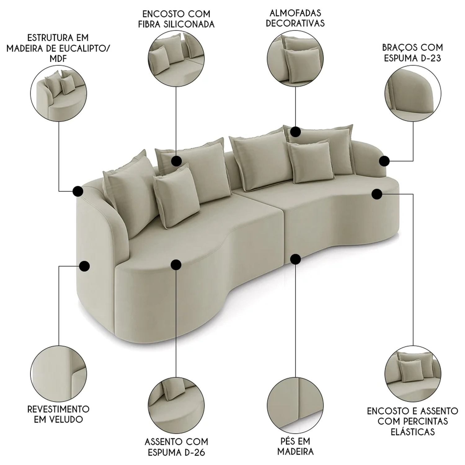 Conheça o Sofá 4 Lugares 290cm Orgânico Quito Z08 Veludo Bege, da Mpozenato, a escolha ideal para transformar sua Sala de Estar em um ambiente acolhedor e cheio de estilo.