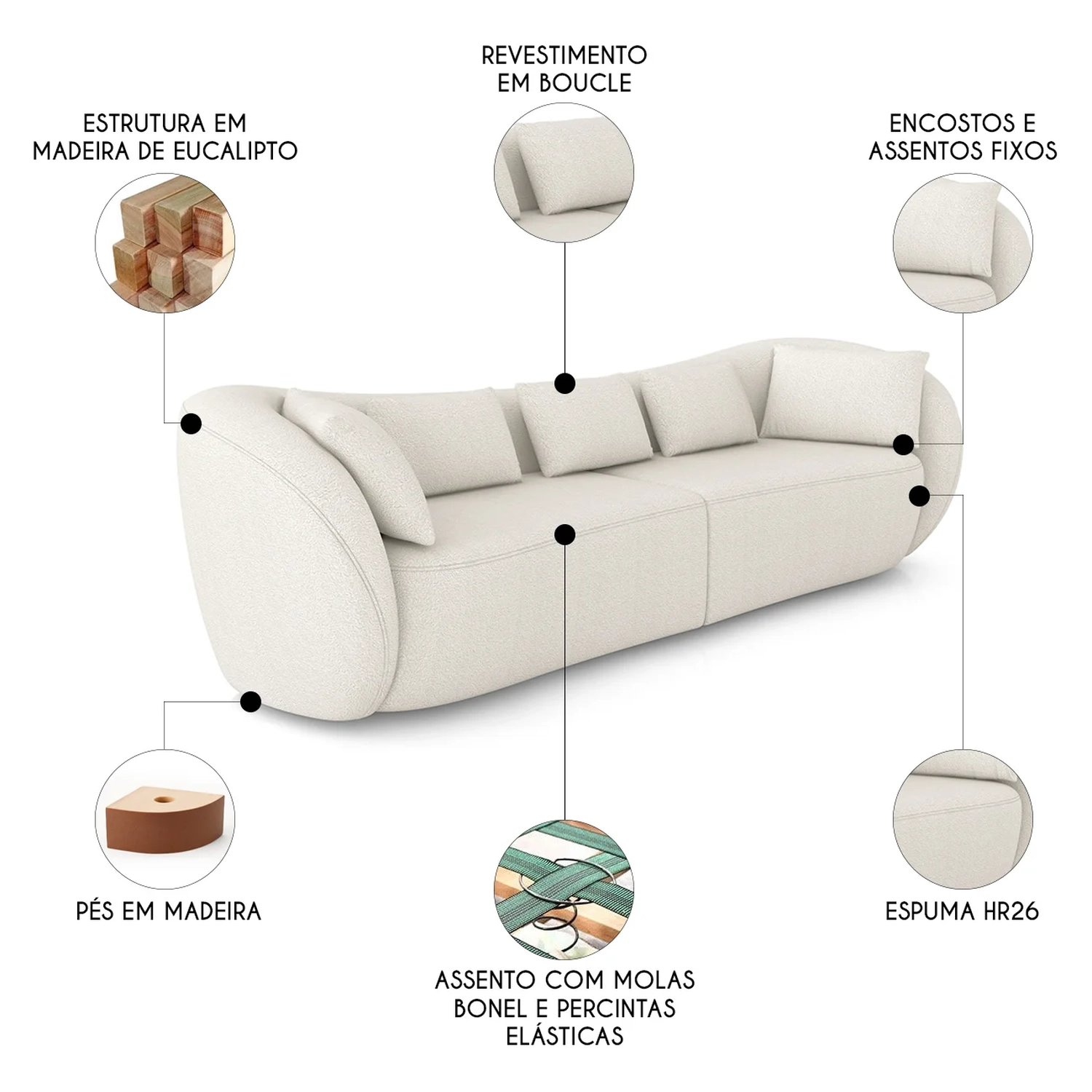 Sofá 4 Lugares 292cm Orgânico Pé Madeira Yume Bouclê Cru Z55 - Mpozenato