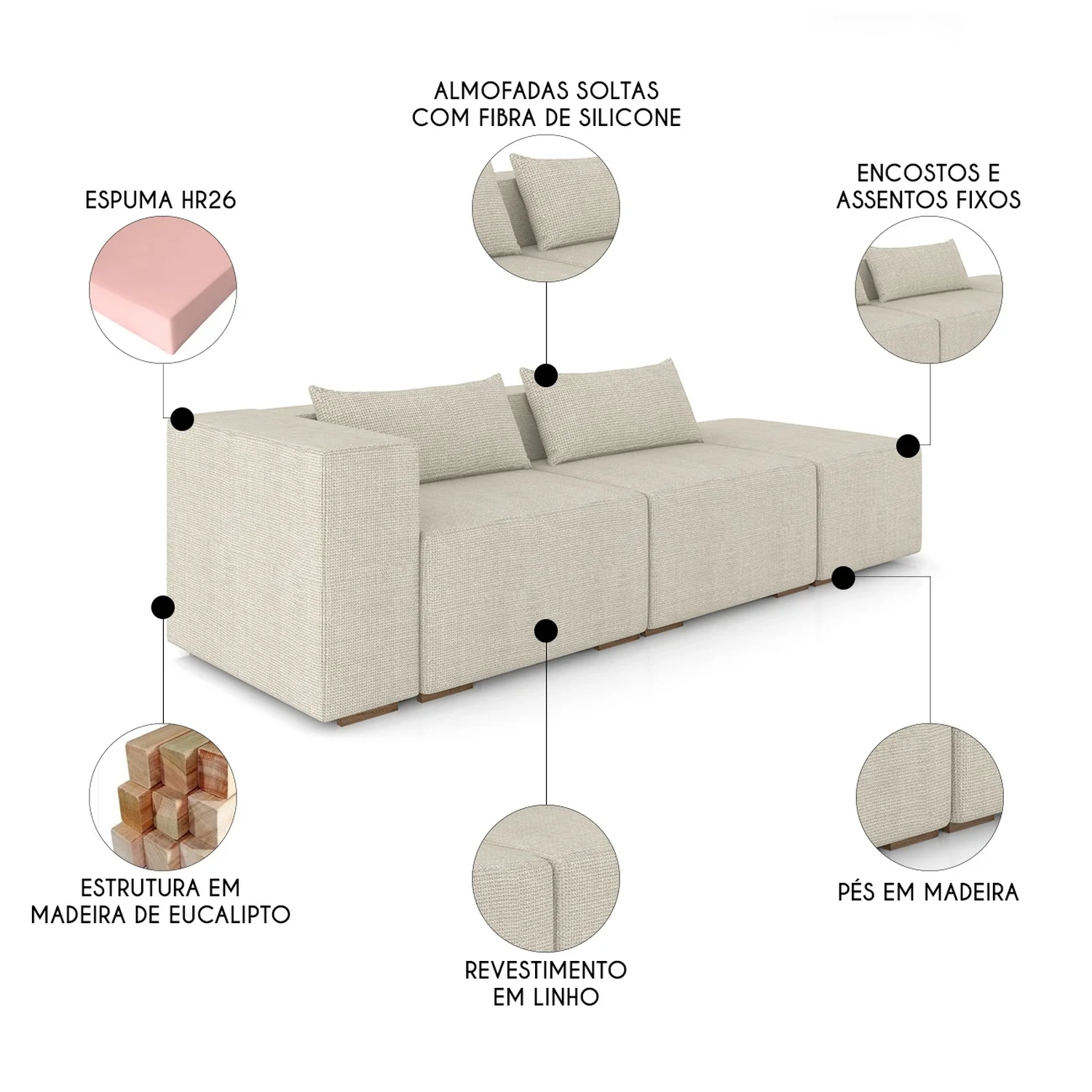 Sofá 4 Lugares 303cm Com Puff Direito Fay Linho Off White Z55