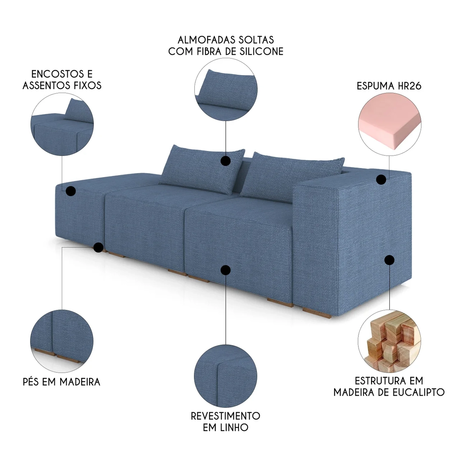 Sofá 4 Lugares 303cm Com Puff Esquerdo Fay Linho Azul Z55