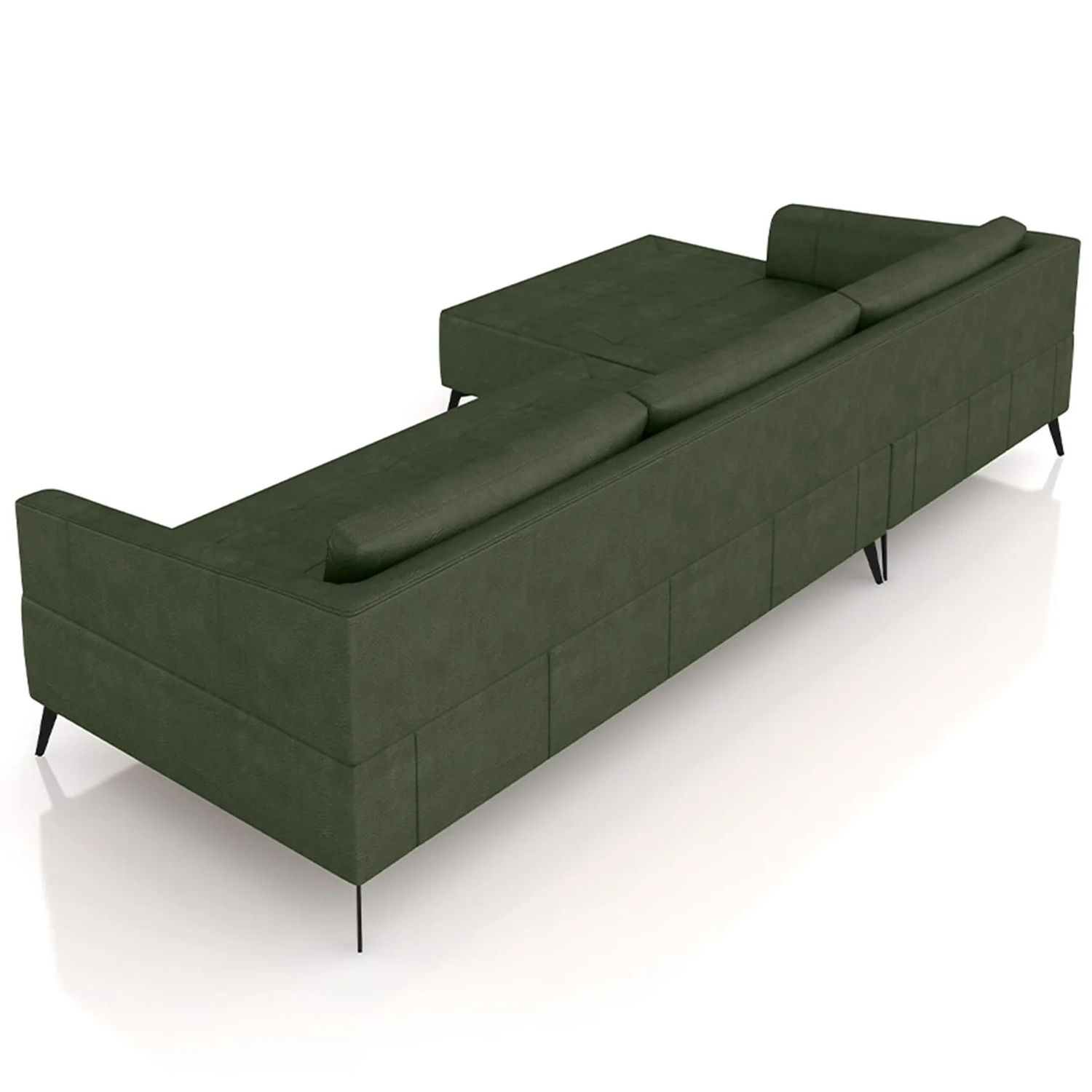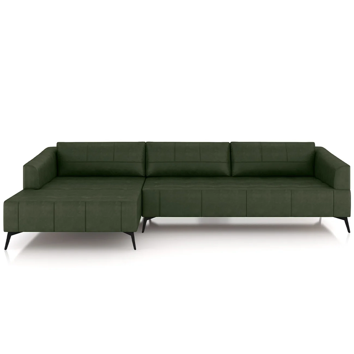 Sofá 4 Lugares 306cm Com Chaise Esquerdo Eko Couro Verde Z55