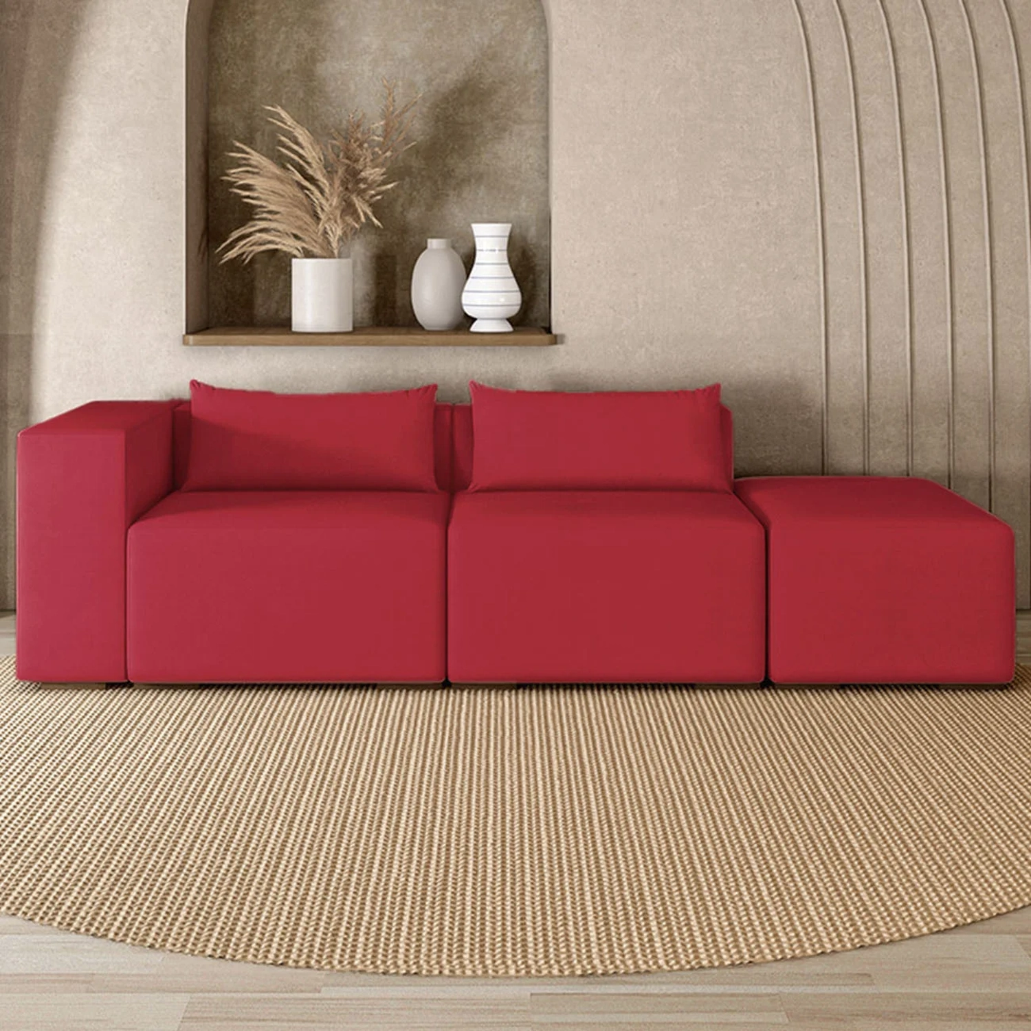 Sofá 4 Lugares 323cm Com Puff Direito Fay Veludo Vermelho Z55