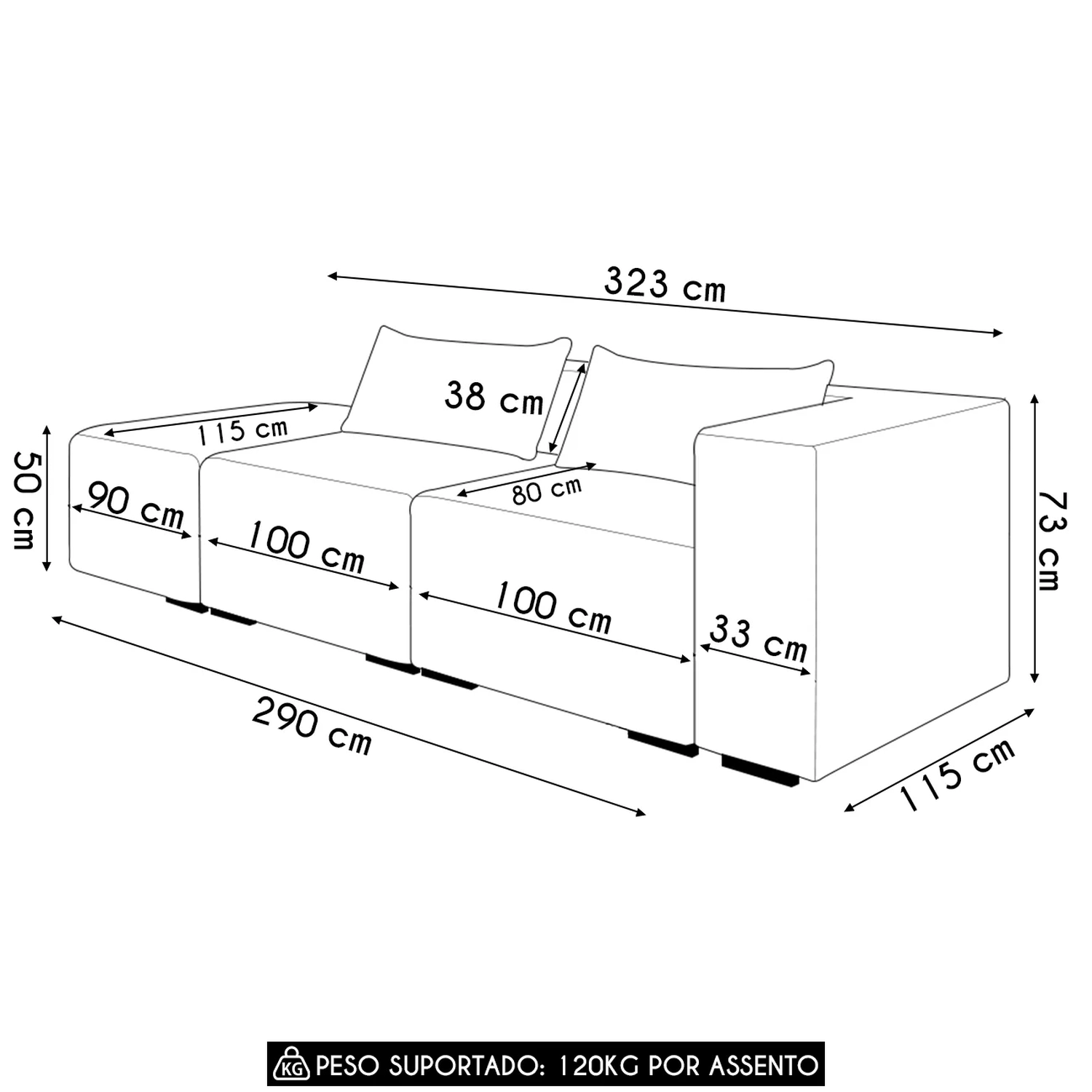 • As dimensões de estofados podem apresentar variação de até 5 cm.