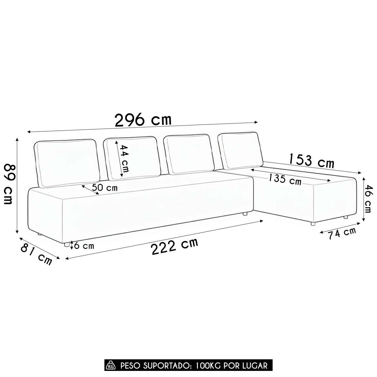 Conteúdo da Embalagem: 1 Sofá, 1 Chaise.