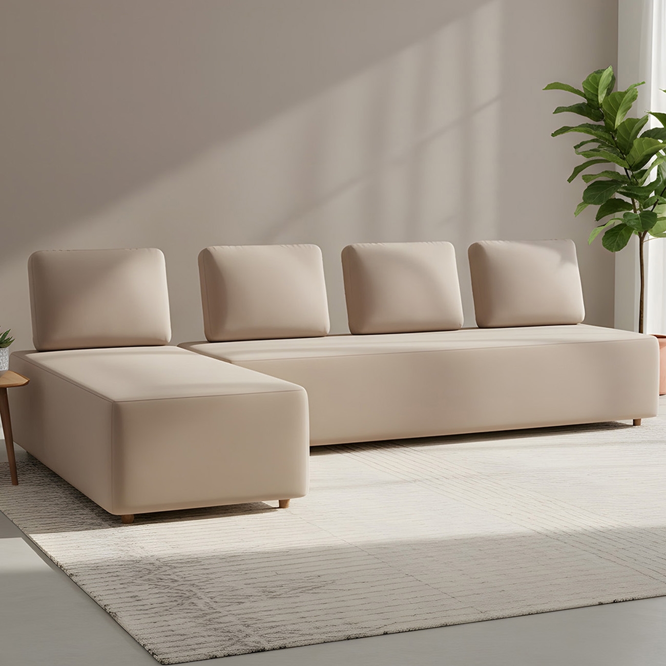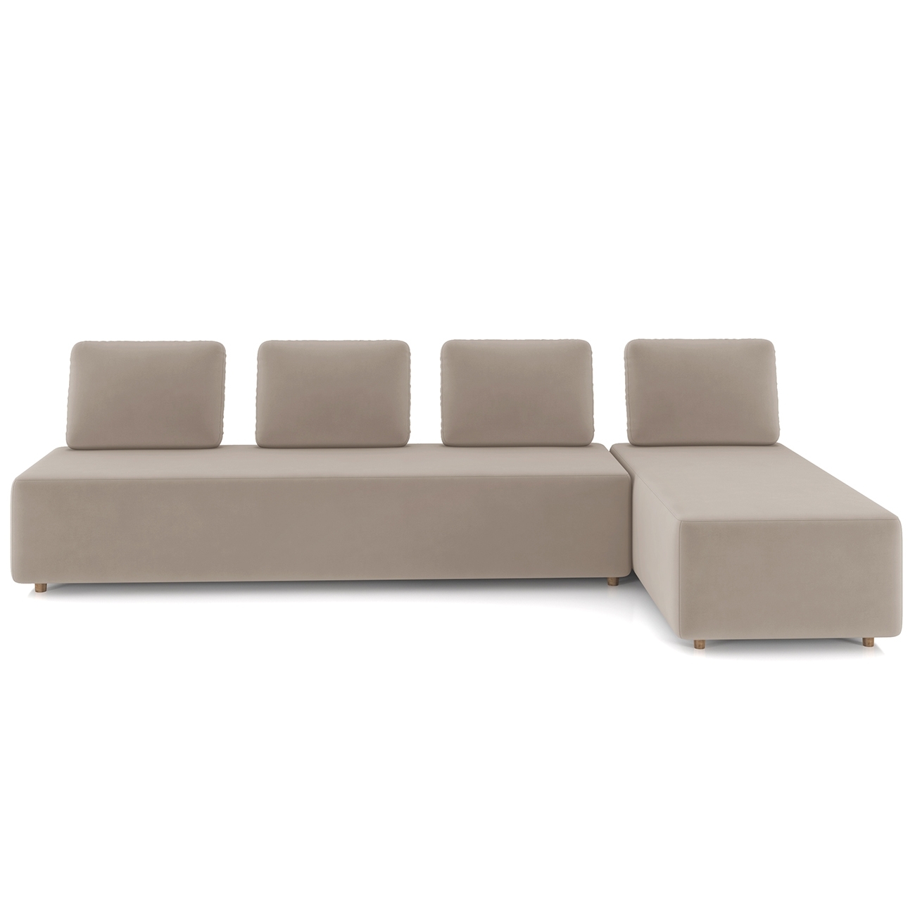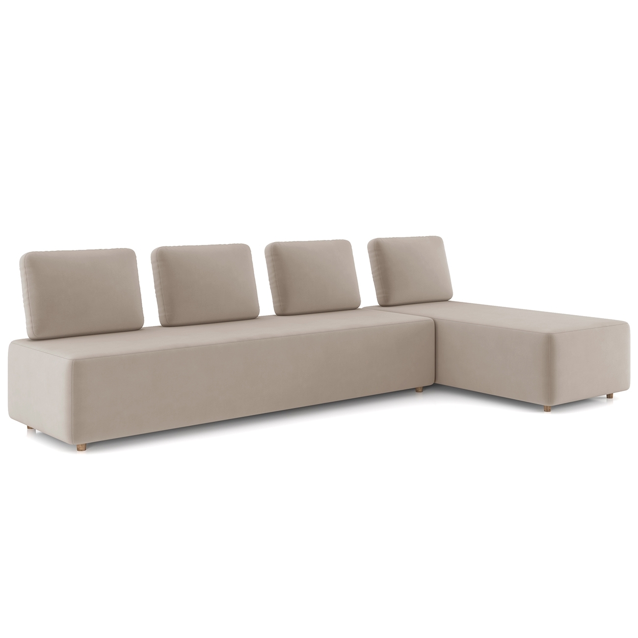 Sofá 4 Lugares Com Chaise 296cm Rovier Veludo Bege Z32 - Mpozenato