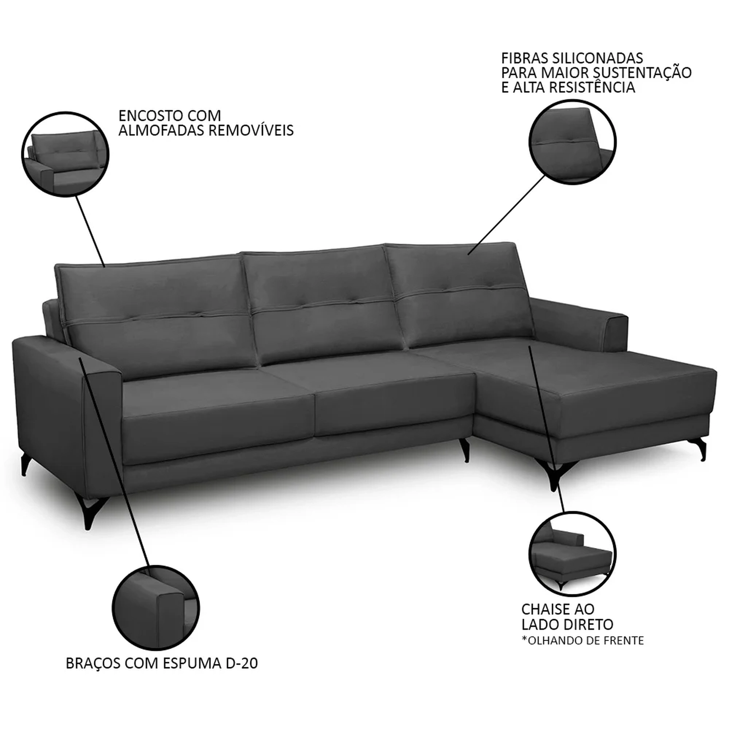 Que o sofá é um item essencial, todo mundo sabe! Mas cada modelo comunica uma algo diferente ao ambiente. Por isso, se você procura por um estofado que transmita a ideia de sofisticação, sem abrir mão da versatilidade, então, o Sofá 4 Lugares com Chaise Direito 285cm Soreh F05 Veludo Grafite, da Mpozenato, é a opção perfeita. Confira!