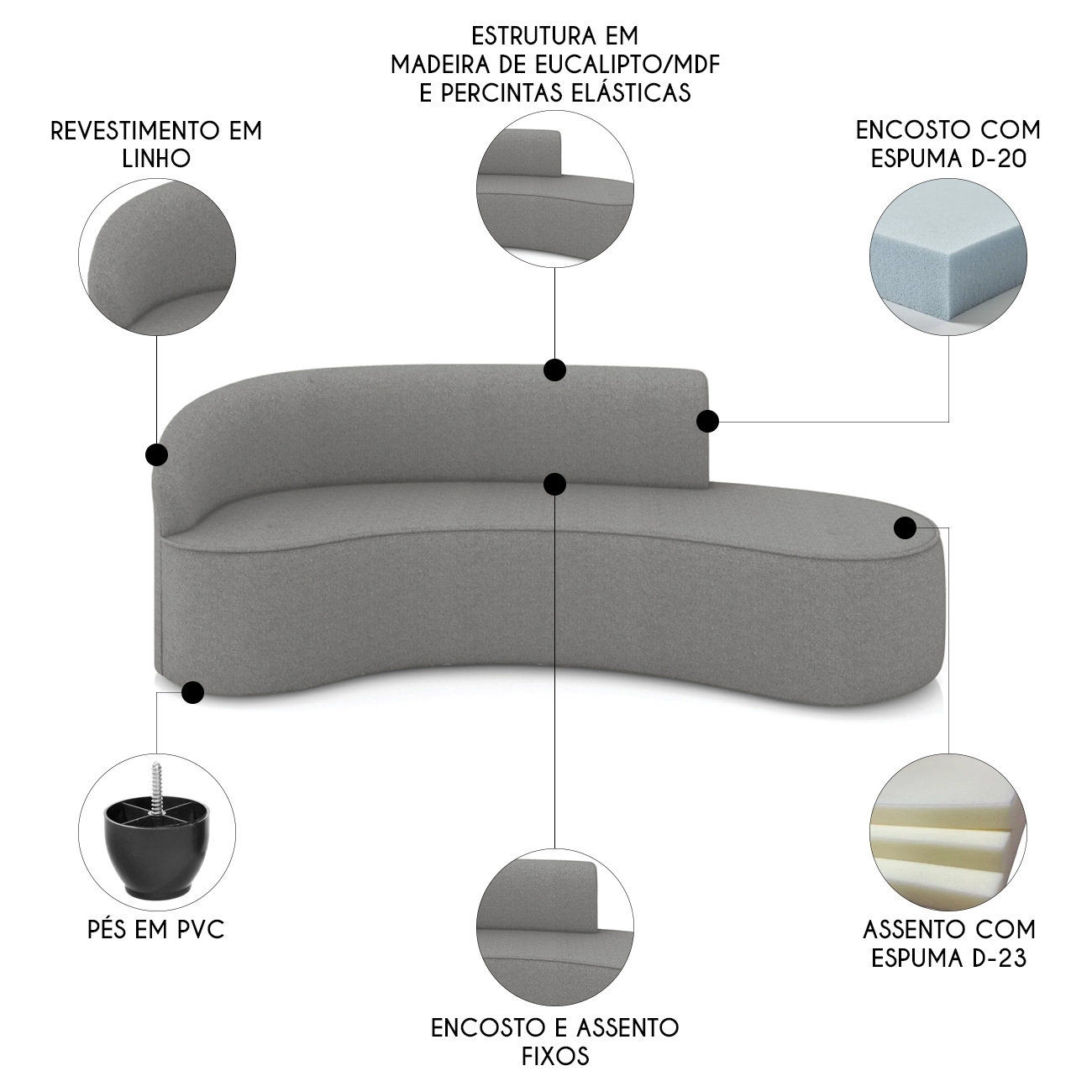 Material da Espuma: Assento D-23/Encosto D-20.
