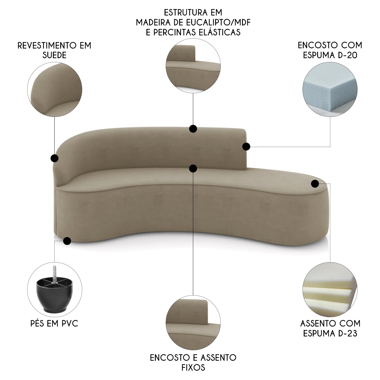 Material da Espuma: Assento D-23/Encosto D-20.