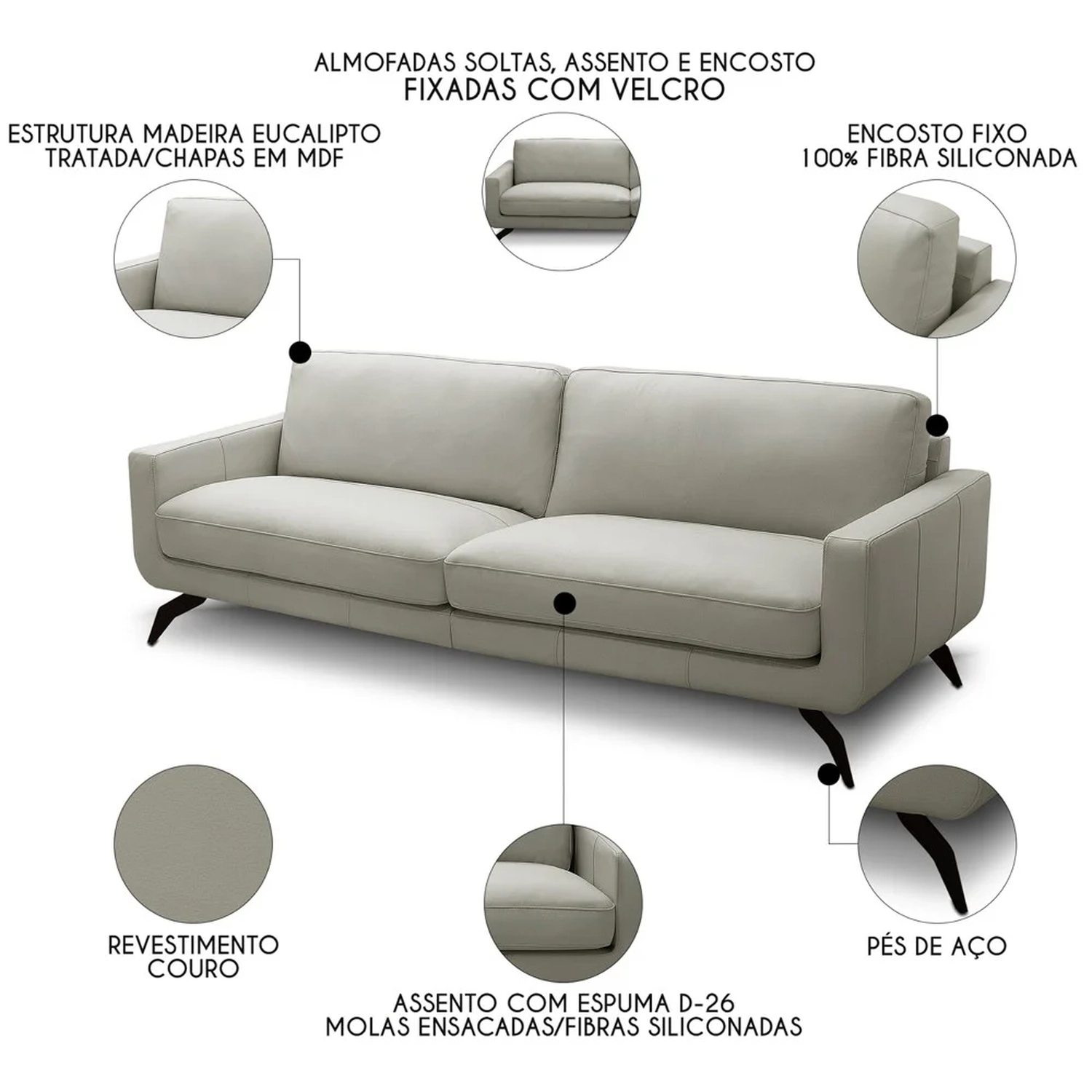 - Almofadas dos assentos e encosto são fixadas através de velcro.