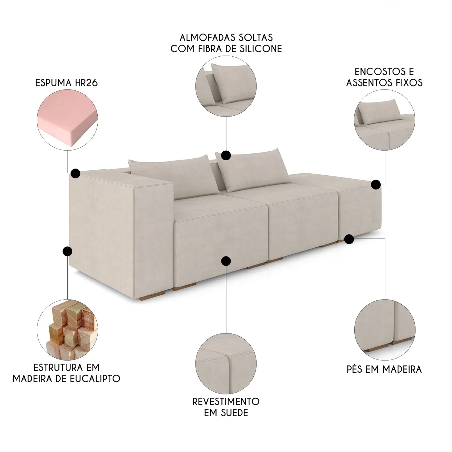 Sofá 5 Lugares 343cm Com Puff Direito Fay Suede Bege Z55
