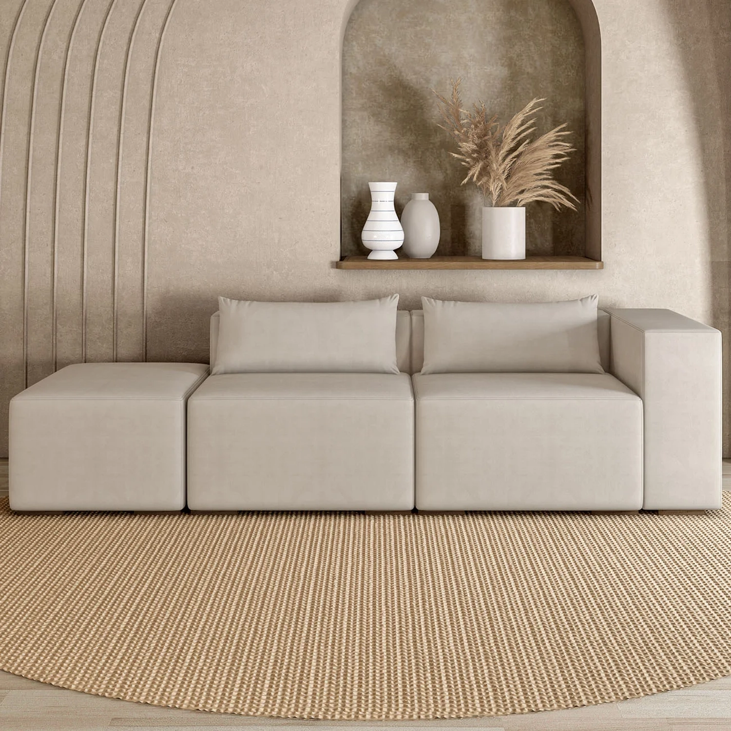Com assento em espuma HR26, molas bonel e percintas trançadas, oferece firmeza e conforto na medida certa. Perfeito para relaxar, principalmente quando combinado com um Sofá Com Puff.