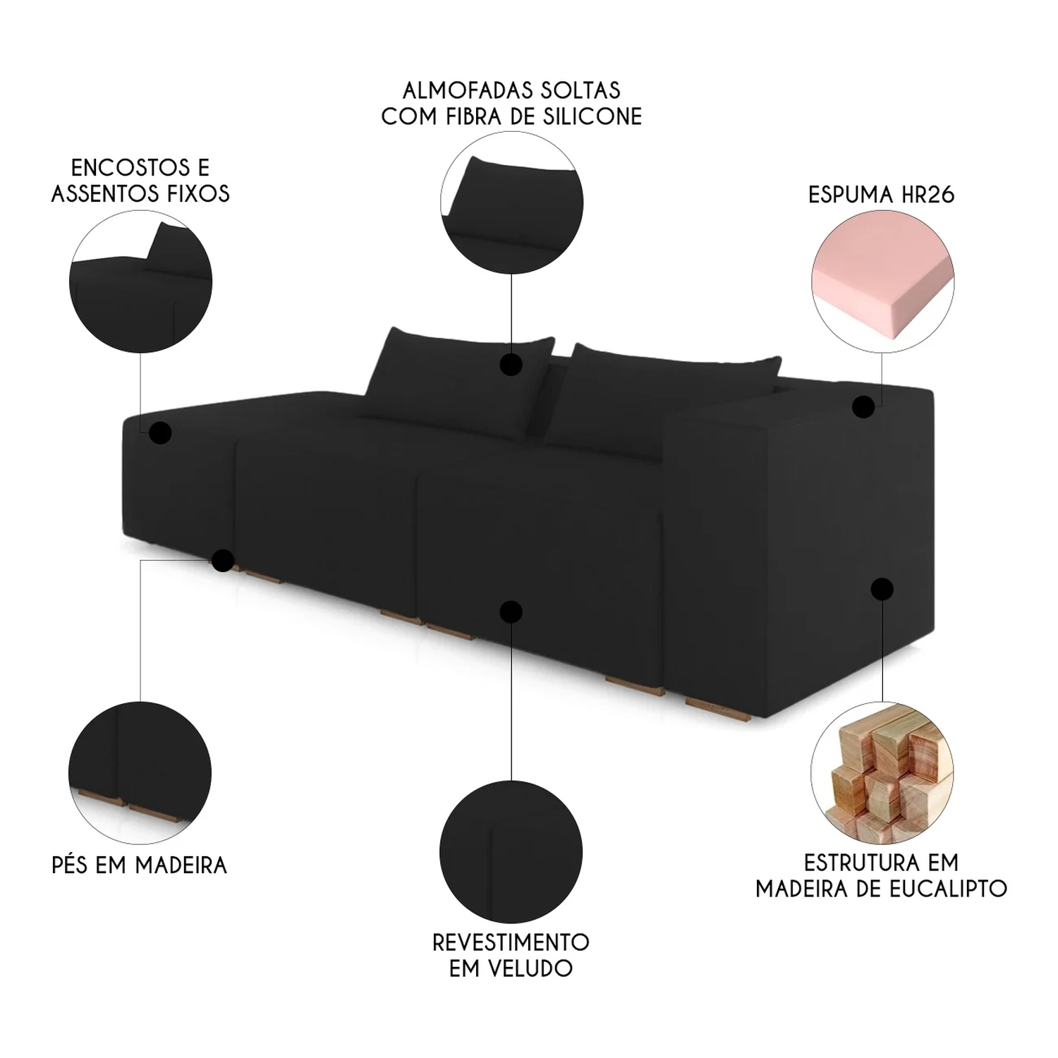 - Almofadas soltas com fibra de silicone.