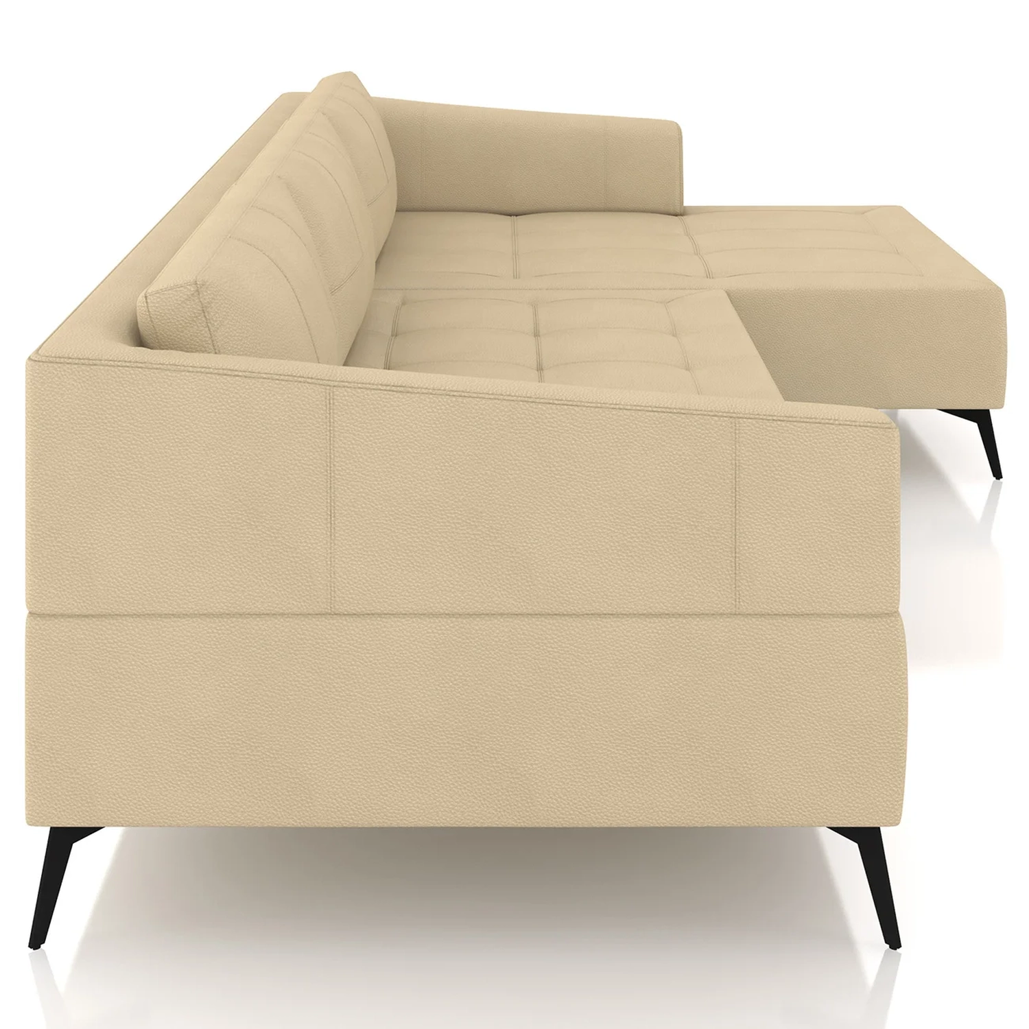 Sofá 5 Lugares 346cm Com Chaise Direito Eko Couro Bege Z55