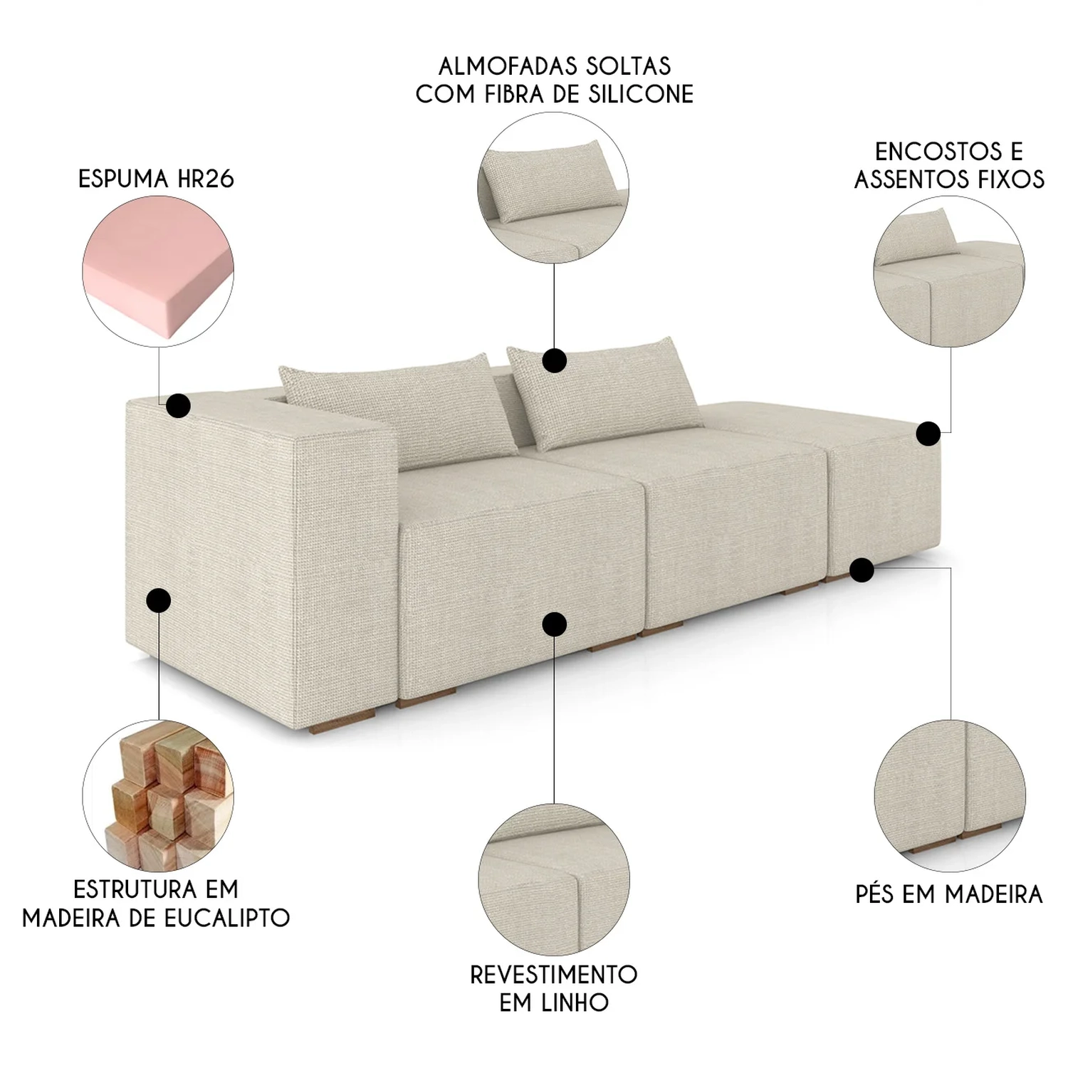 Sofá 5 Lugares 363cm Com Puff Direito Fay Linho Cru Z55