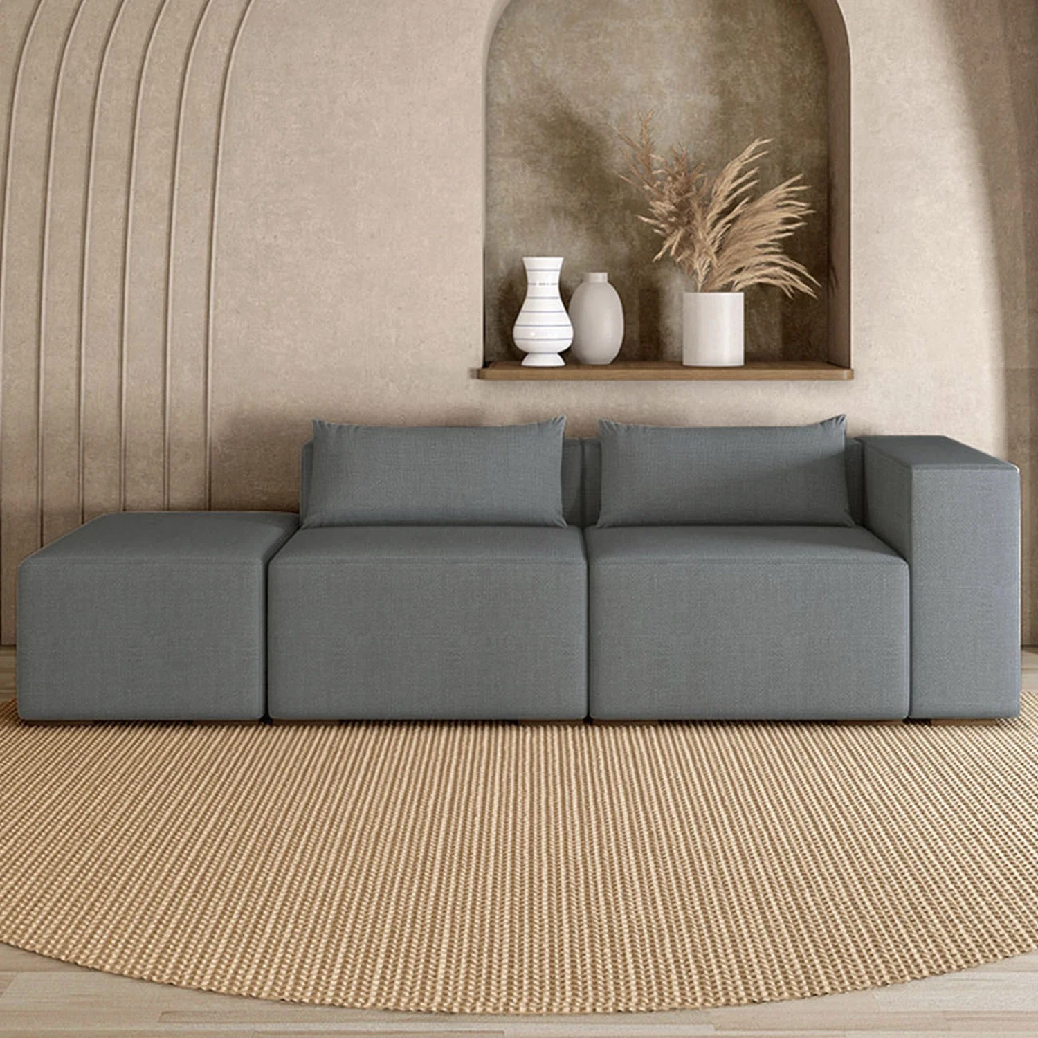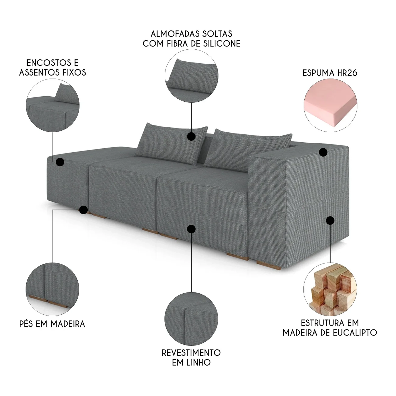 Com assento em espuma HR26, molas bonel e percintas trançadas, oferece firmeza e conforto na medida certa. Perfeito para relaxar, principalmente quando combinado com um Sofá Com Puff.