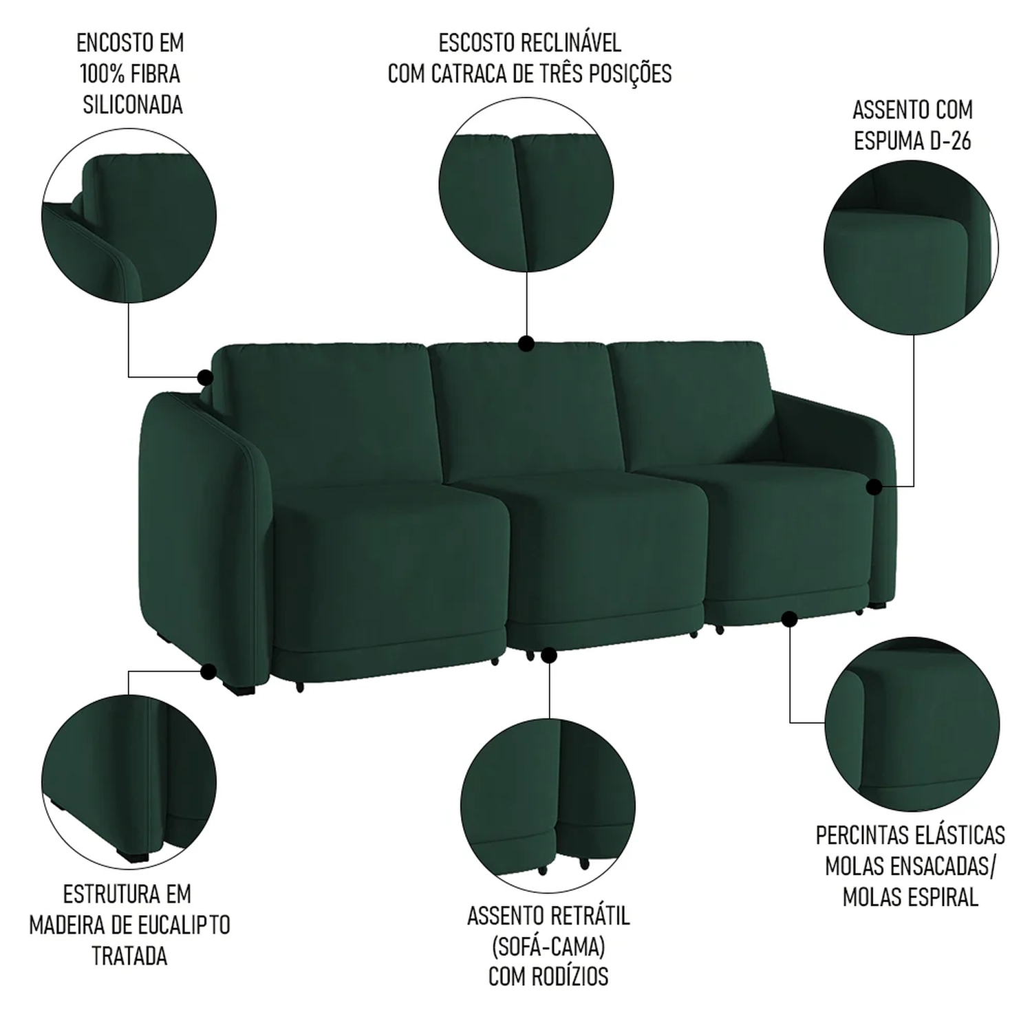 Essa peça impressionante foi projetada para trazer conforto e estilo ao seu espaço, principalmente com o recurso retrátil, em que você pode ajustar facilmente o sofá para atender às suas necessidades de assento, além de aproveitá-lo como cama e acomodar perfeitamente as suas visitas. Isso porque, a espuma D26 garante o máximo de conforto, enquanto o revestimento de alto padrão acrescenta um toque de elegância. Seja para assistir a um filme ou para receber convidados, esse sofá 3 lugares será o complemento perfeito para a sua sala de estar.