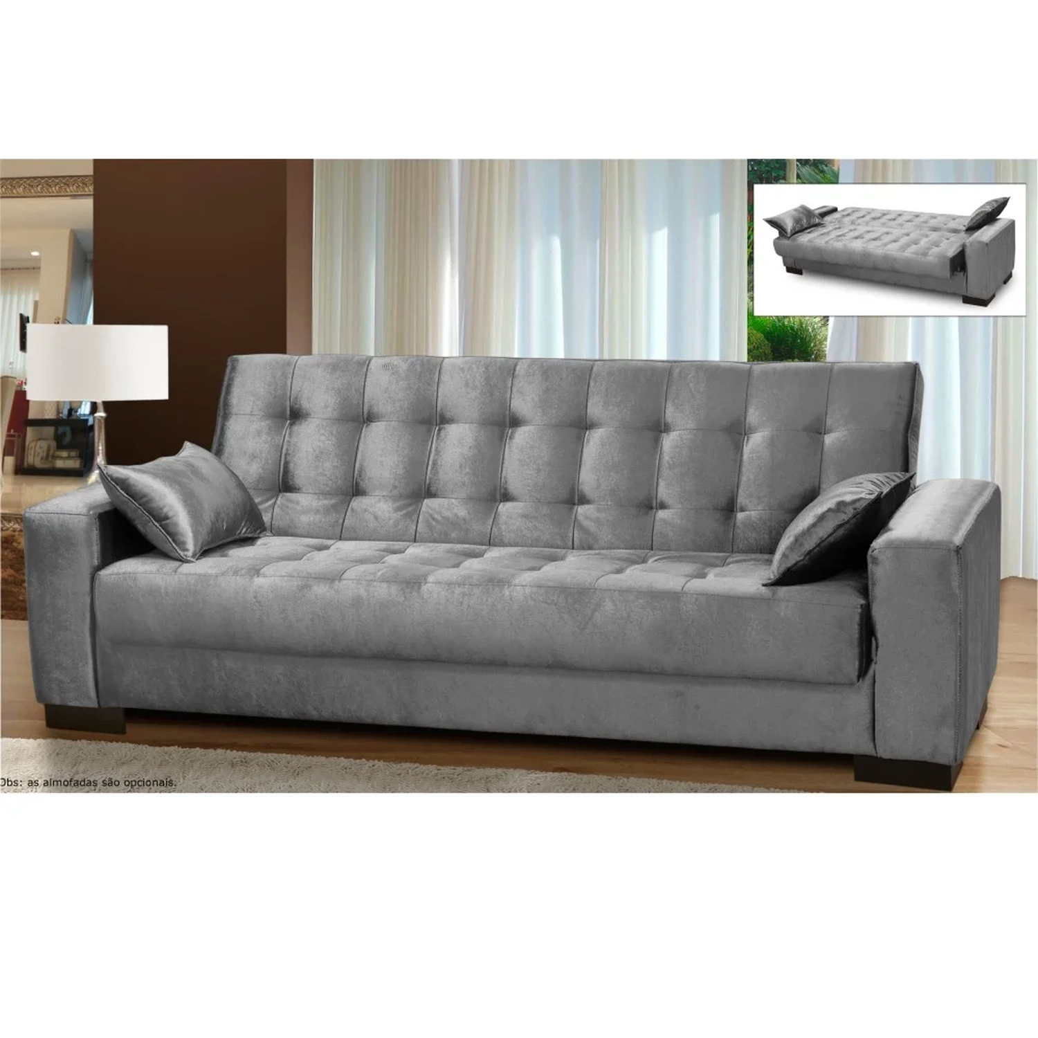 Sofá Cama para Sala de Estar Lisboa Suede Cinza - Ibiza 35592