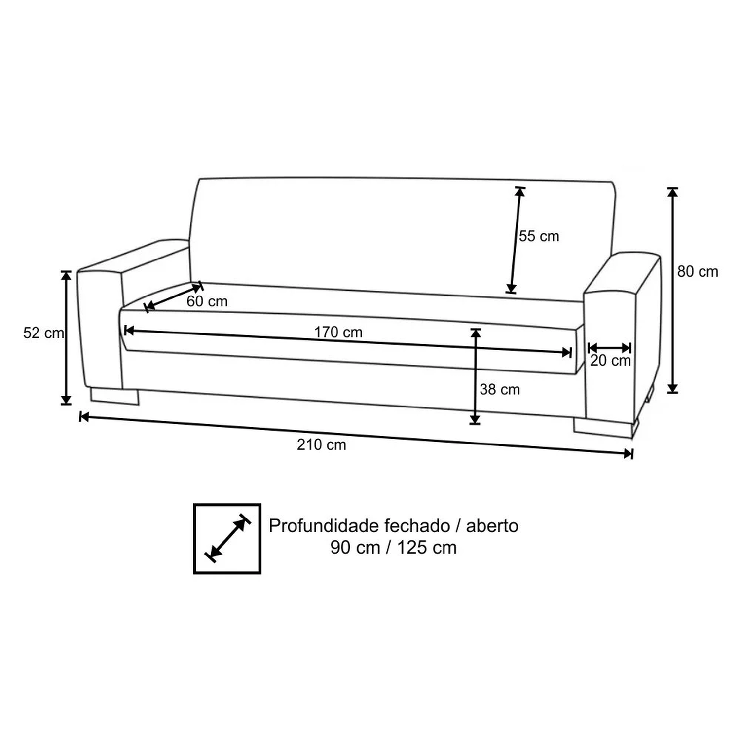 Dimensões do sofá Fechado: (L x A x P) 210 x 80 x 90 cm