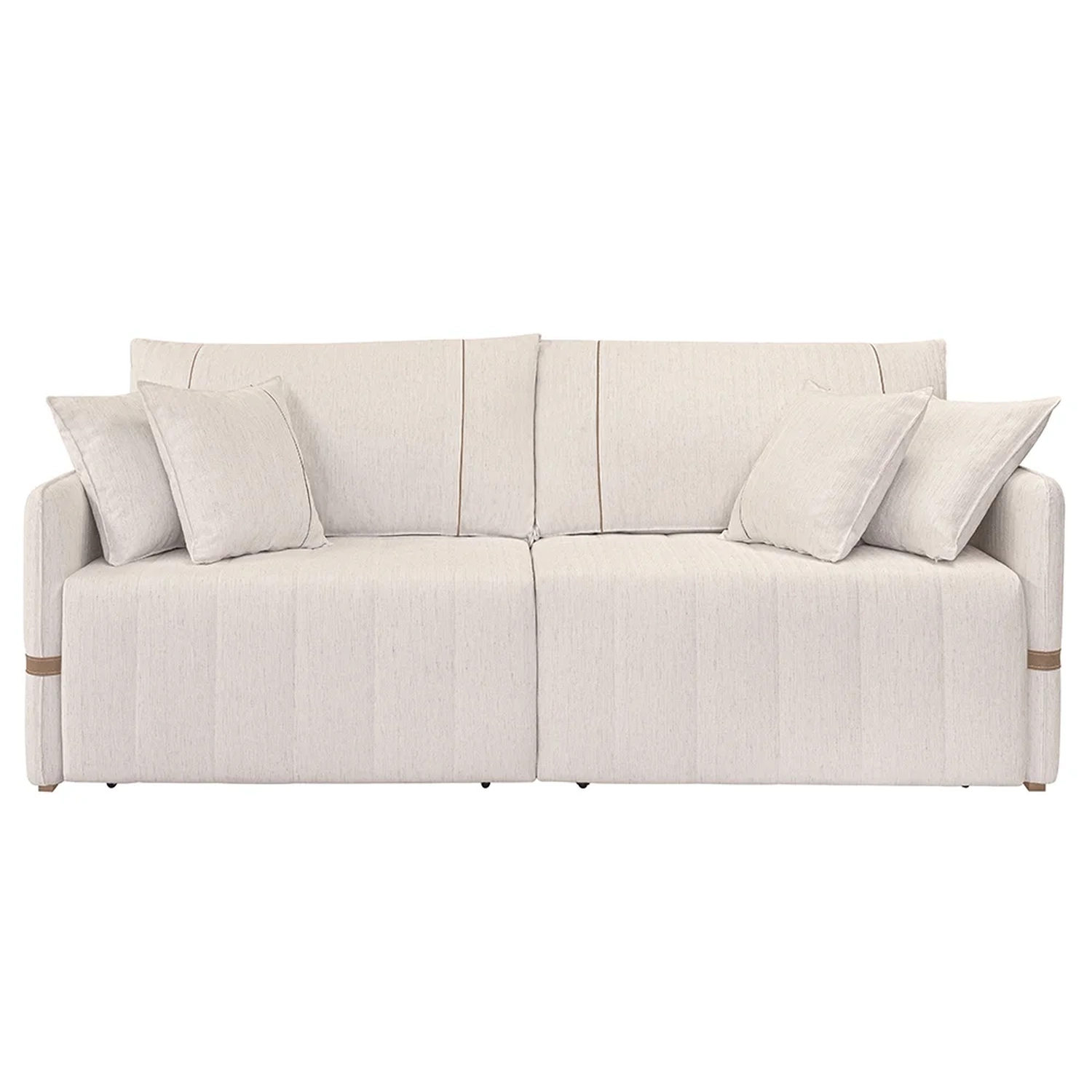 Revestido com o mais fino linho, oferece uma textura suave ao toque, enquanto os detalhes em sintético nos braços adicionam um toque de sofisticação. Os botões de madeira cuidadosamente inseridos destacam-se, proporcionando um visual clássico e atemporal. Para garantir o máximo conforto em sua Sala De Estar, este Sofá 4 Lugares acompanha almofadas e encosto com plumante, percintas elásticas e molas Bonnell, que juntas criam uma experiência de assento e sono excepcional. Os pés 3cm em madeira cor mel não só reforçam a robustez da estrutura, mas também complementam o design com sua beleza natural. Ah! Além de tudo, esse Sofá Retrátil possui rodízios em silicone facilitando a abertura. Ideal para quem busca praticidade sem abrir mão do estilo, este sofá-cama é uma adição luxuosa a qualquer ambiente.