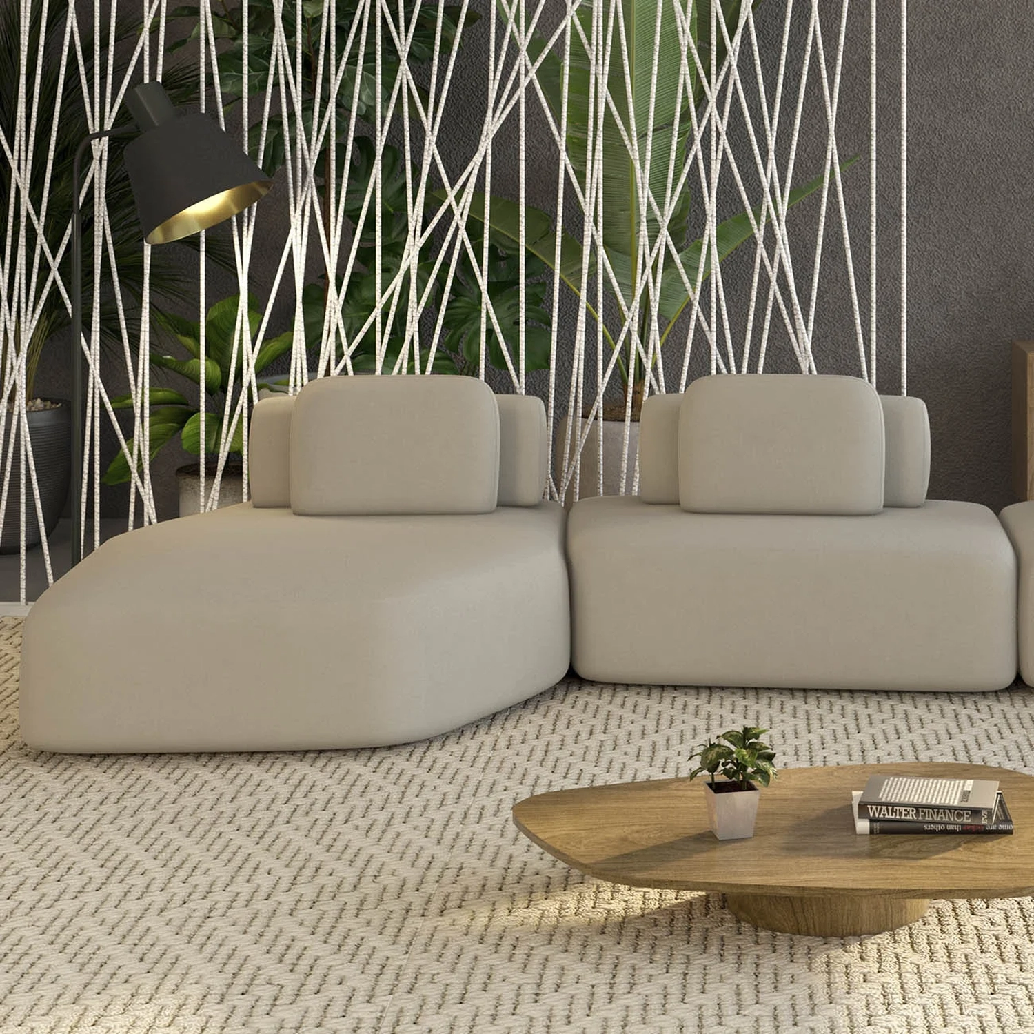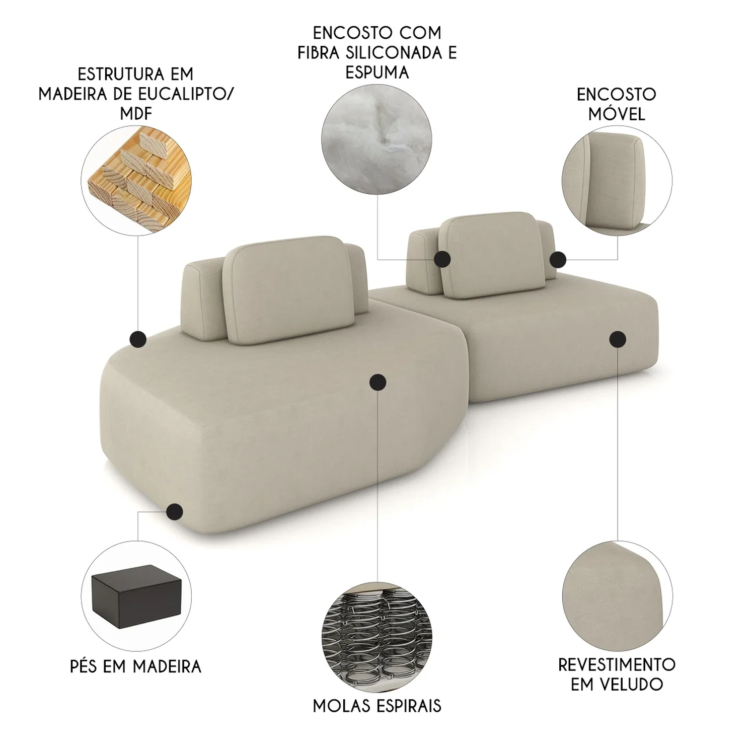 Sofá Ilha 275cm 2 Módulos Sala de Estar Moby Veludo Bege - Mpozenato