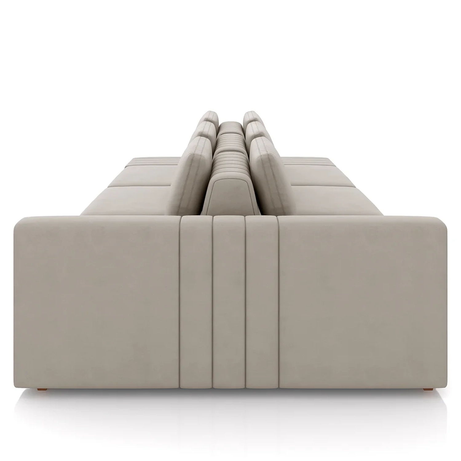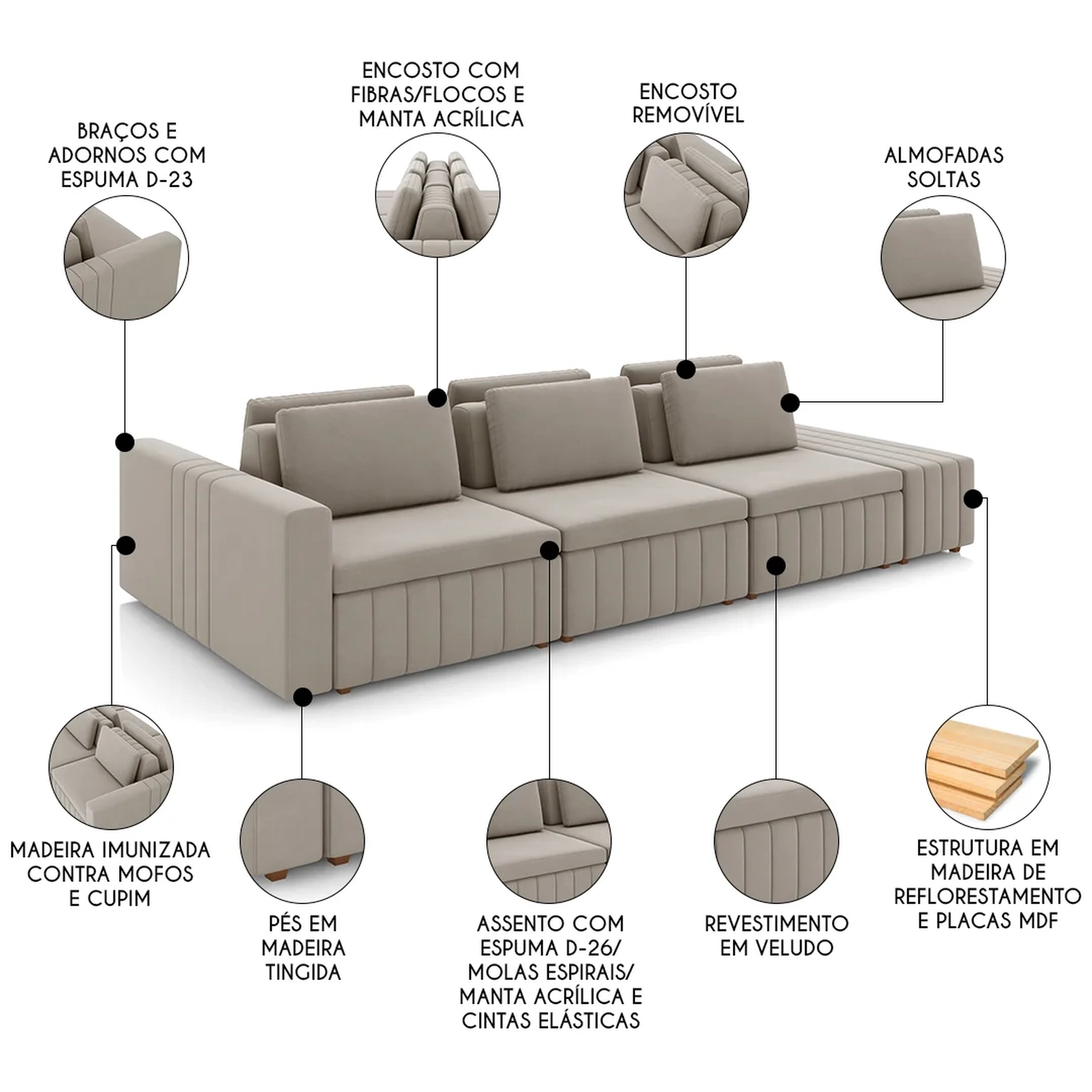 Procurando um sofá que seja perfeito para a sua sala de estar, living ou ambientes integrados? Conheça o Sofá Ilha com Puff Para Sala Living 365cm Siesta Z32 Veludo Bege, da Mpozenato, um móvel que combina design moderno e funcionalidade em uma só peça.