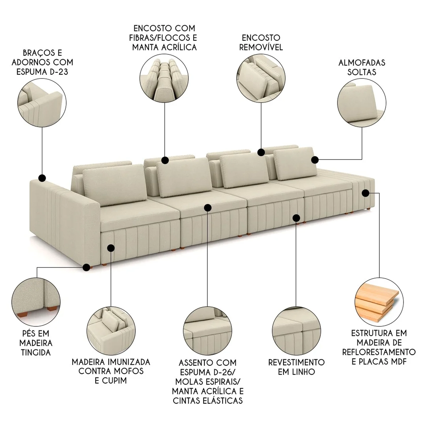 Procurando um sofá que seja perfeito para a sua sala de estar, living ou ambientes integrados? Conheça o Sofá Ilha com Puff Para Sala Living 465cm Siesta Z32 Linho Cru, da Mpozenato, um móvel que combina design moderno e funcionalidade em uma só peça.