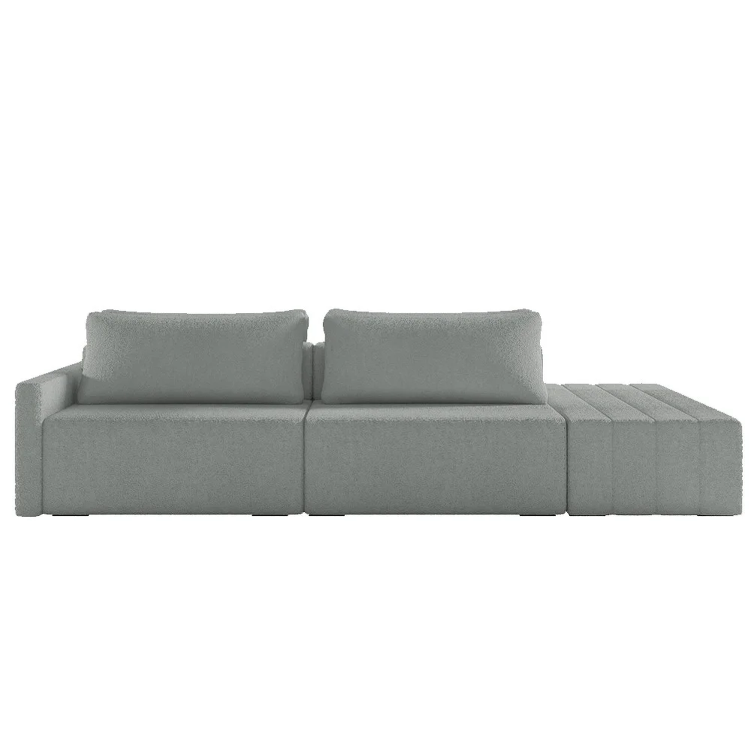 Eleve seu espaço de convivência a novos patamares de luxo com o Sofá Ilha Modular com Puff para Sala Living 252cm Georgia Z08 Boucle Cinza, da Mpozenato!