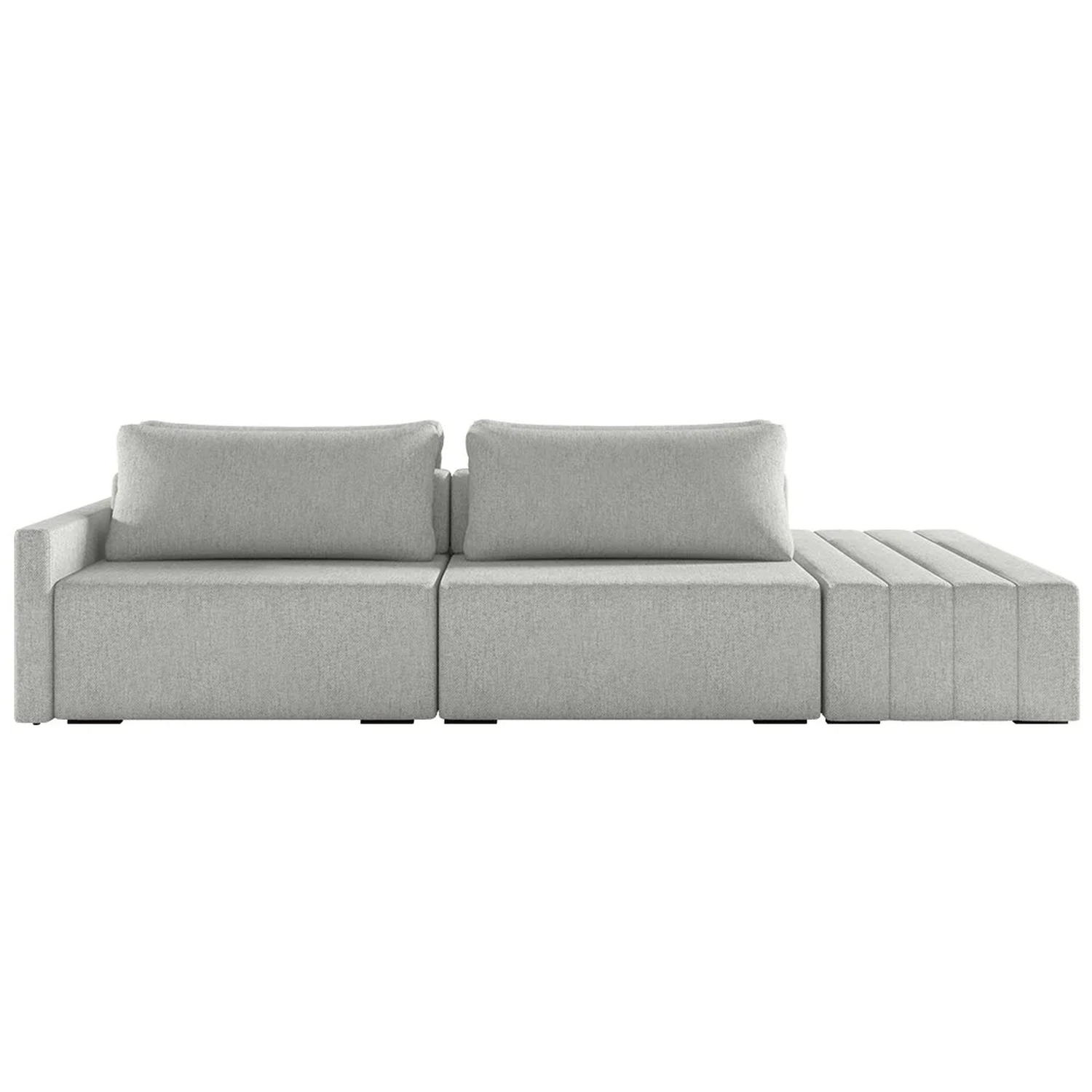 Eleve seu espaço de convivência a novos patamares de luxo com o Sofá Ilha Modular com Puff para Sala Living 252cm Georgia Z08 Linho Cinza, da Mpozenato!