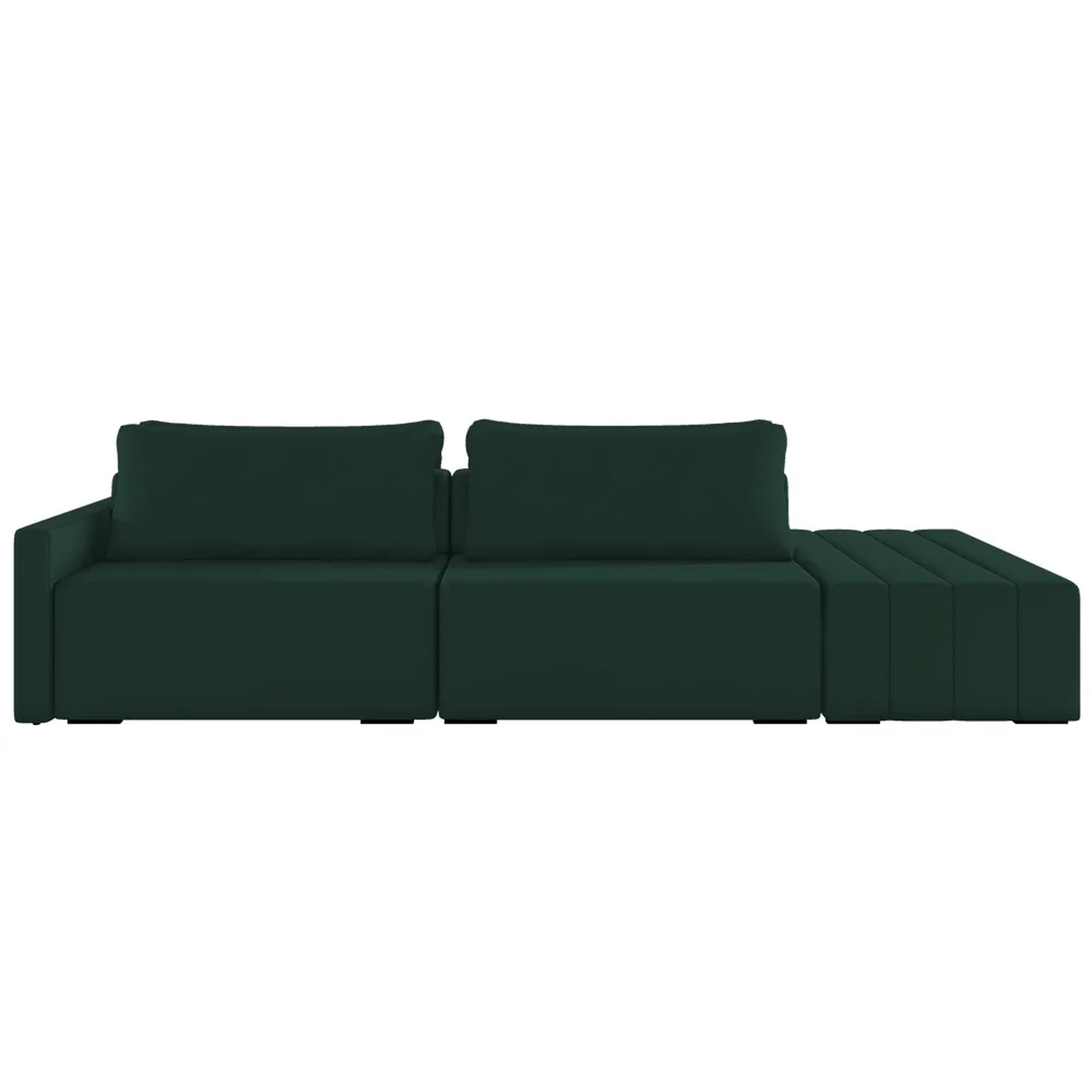 Eleve seu espaço de convivência a novos patamares de luxo com o Sofá Ilha Modular com Puff para Sala Living 252cm Georgia Z08 Veludo Verde, da Mpozenato!