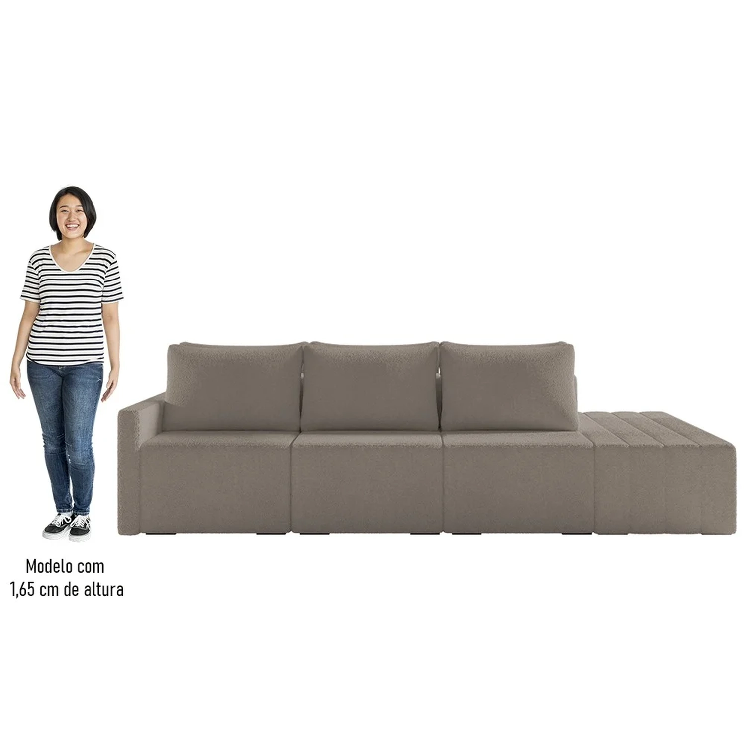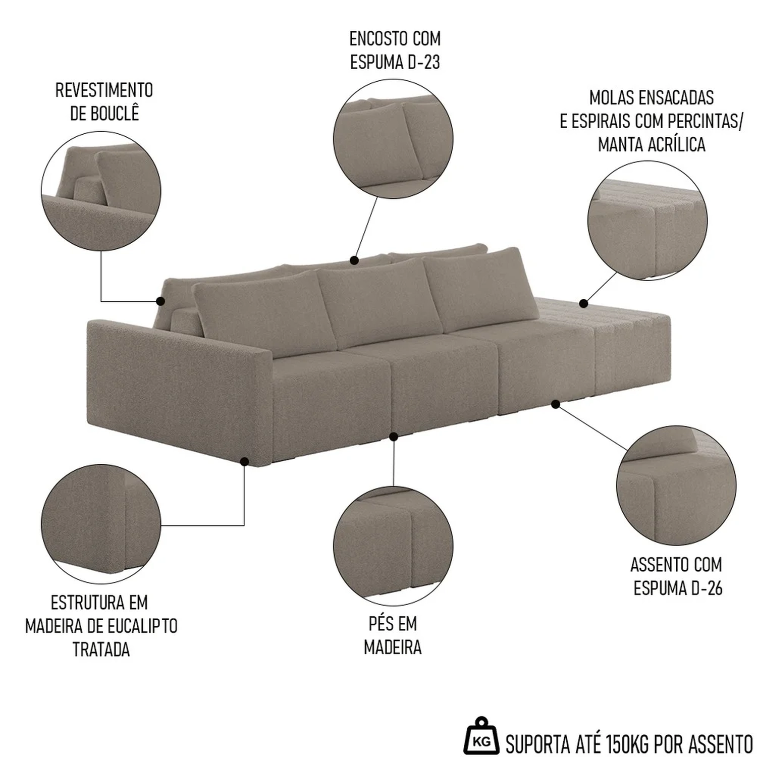 Eleve seu espaço de convivência a novos patamares de luxo com o Sofá Ilha Modular com Puff para Sala Living 312cm Georgia Z08 Boucle Bege Escuro, da Mpozenato!