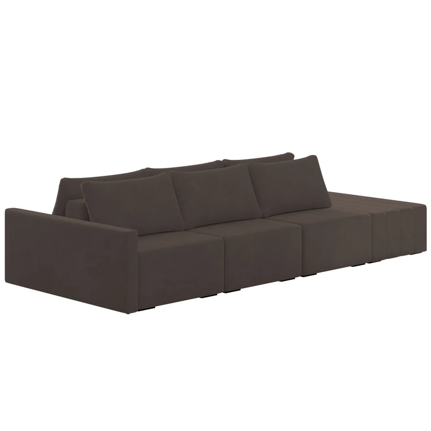 Eleve seu espaço de convivência a novos patamares de luxo com o Sofá Ilha Modular com Puff para Sala Living 312cm Georgia Z08 Veludo Marrom, da Mpozenato!