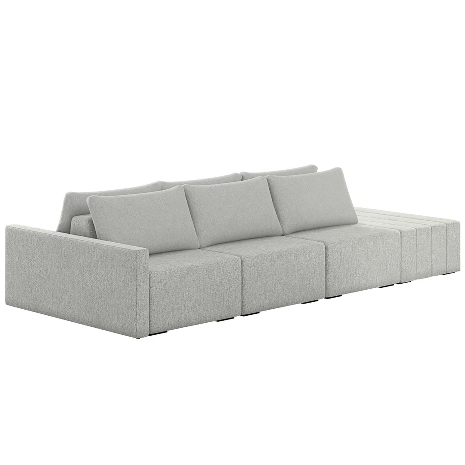 Eleve seu espaço de convivência a novos patamares de luxo com o Sofá Ilha Modular com Puff para Sala Living 342cm Georgia Z08 Linho Cinza, da Mpozenato!