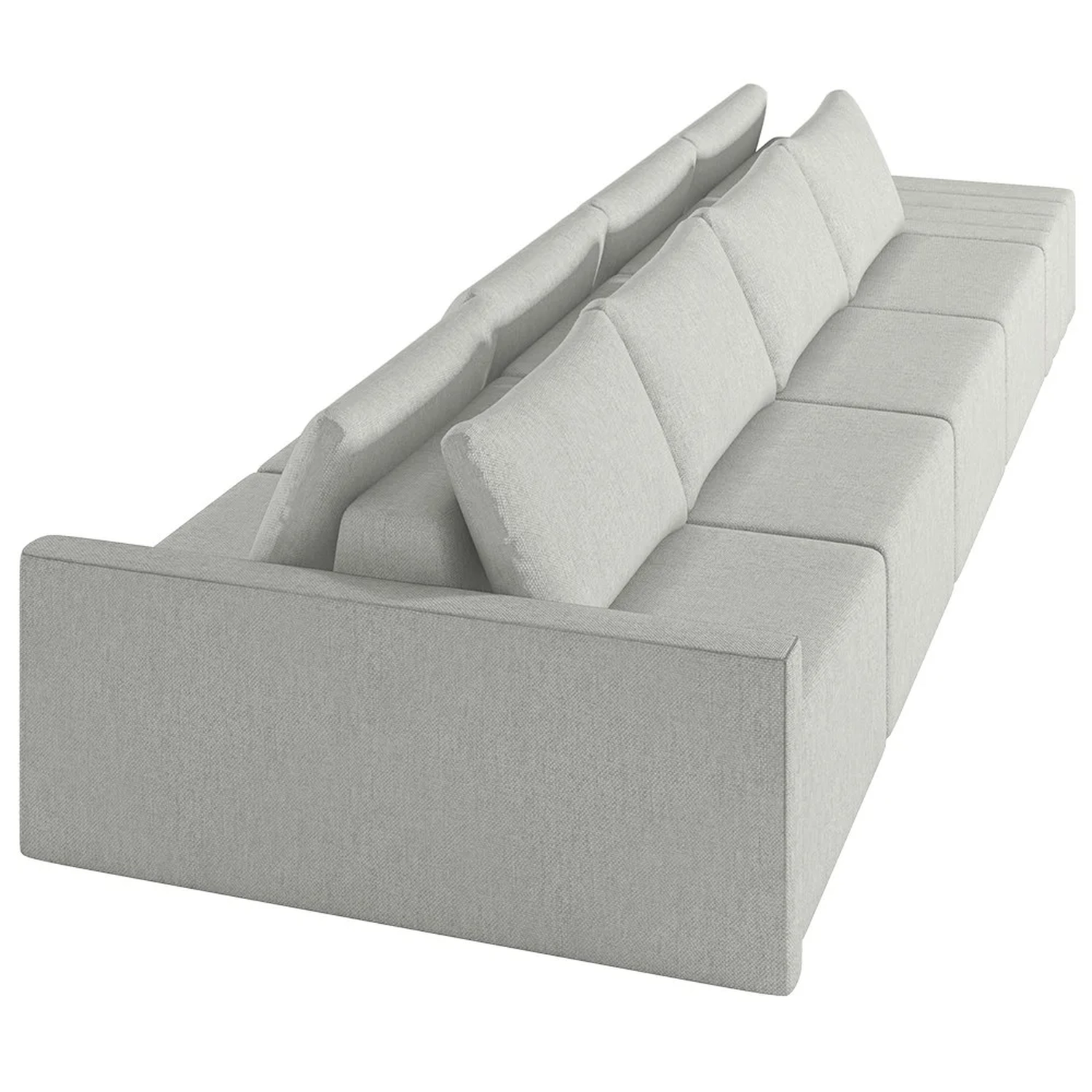 Eleve seu espaço de convivência a novos patamares de luxo com o Sofá Ilha Modular com Puff para Sala Living 392cm Georgia Z08 Linho Cinza, da Mpozenato!
