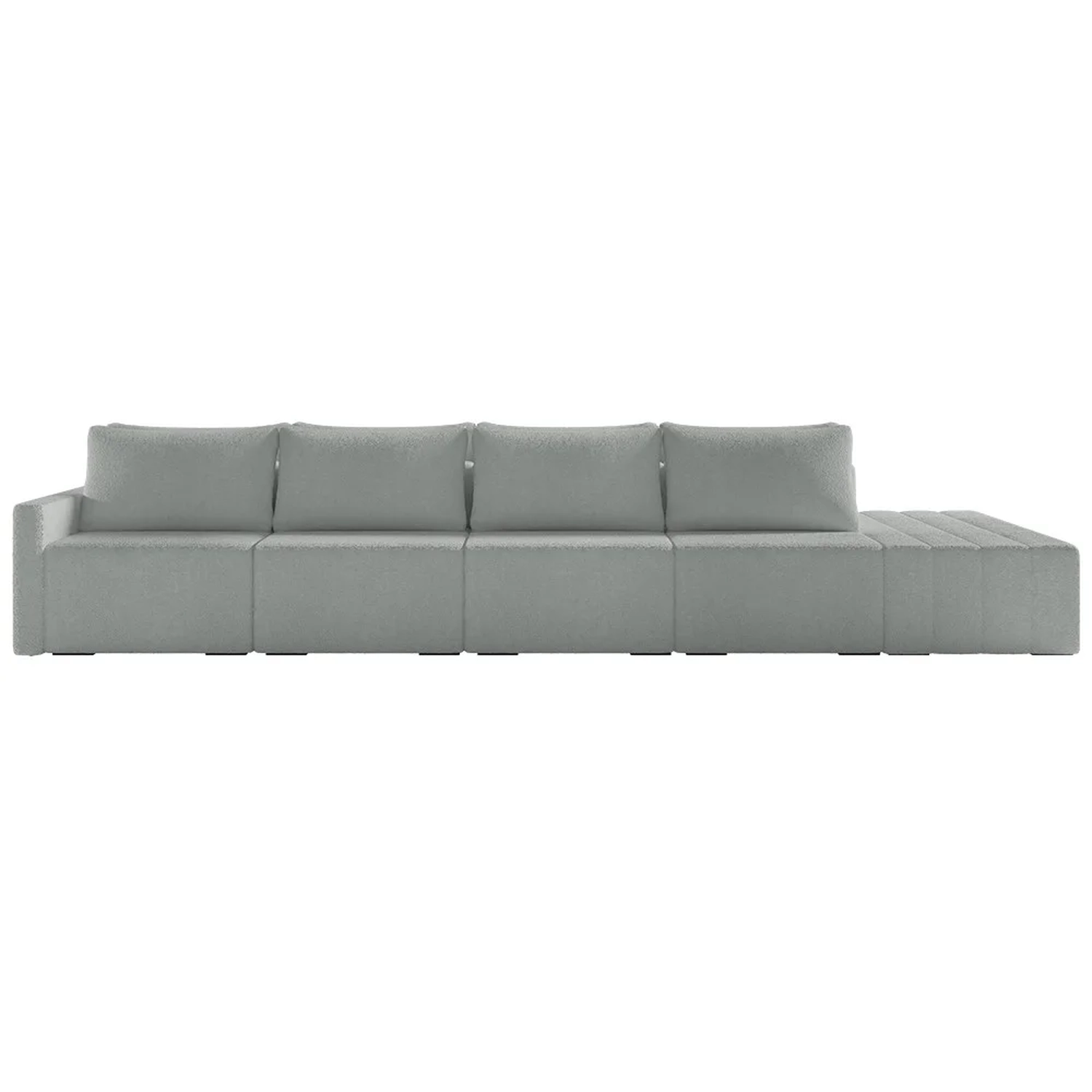 Eleve seu espaço de convivência a novos patamares de luxo com o Sofá Ilha Modular com Puff para Sala Living 432cm Georgia Z08 Boucle Cinza, da Mpozenato!