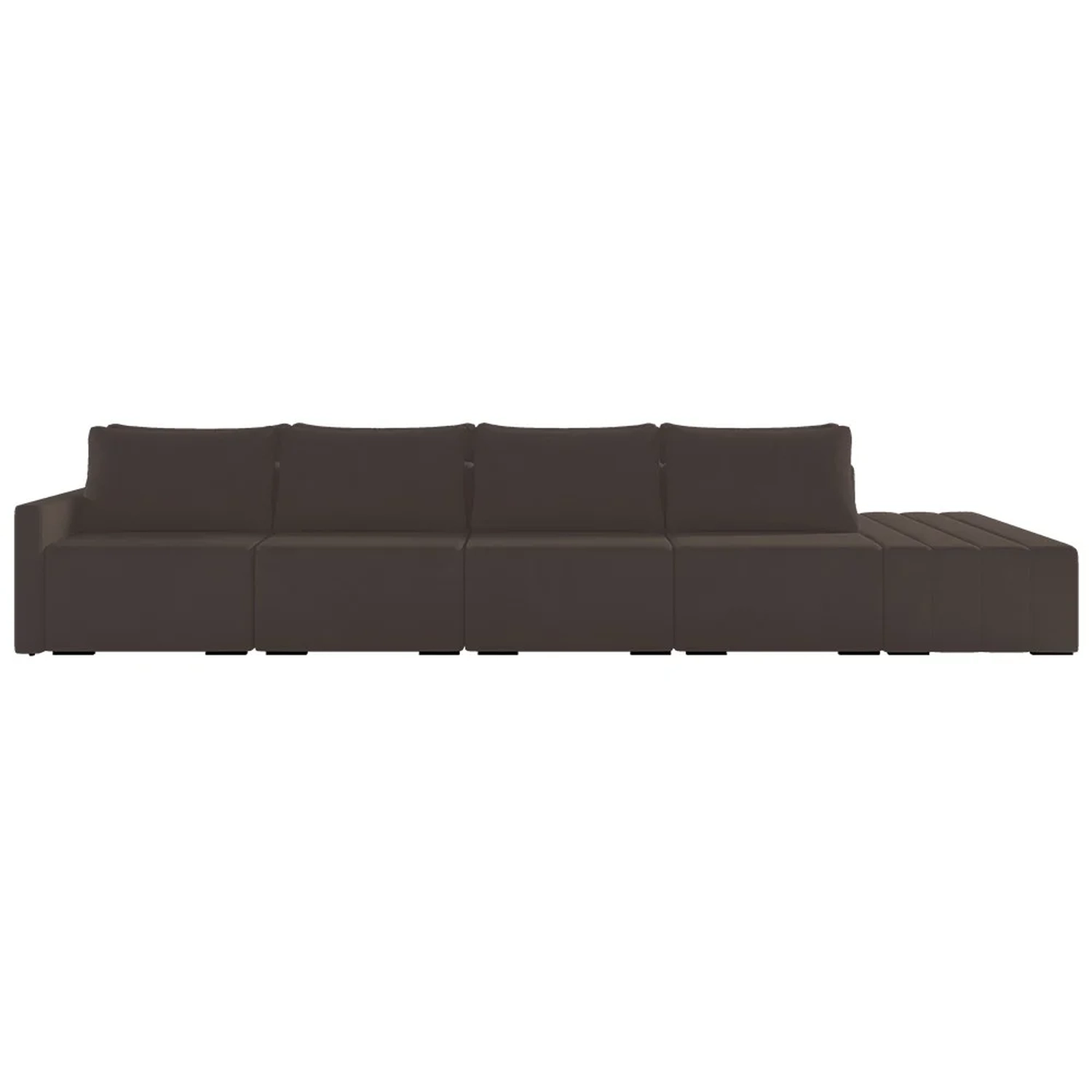 Eleve seu espaço de convivência a novos patamares de luxo com o Sofá Ilha Modular com Puff para Sala Living 432cm Georgia Z08 Veludo Marrom, da Mpozenato!