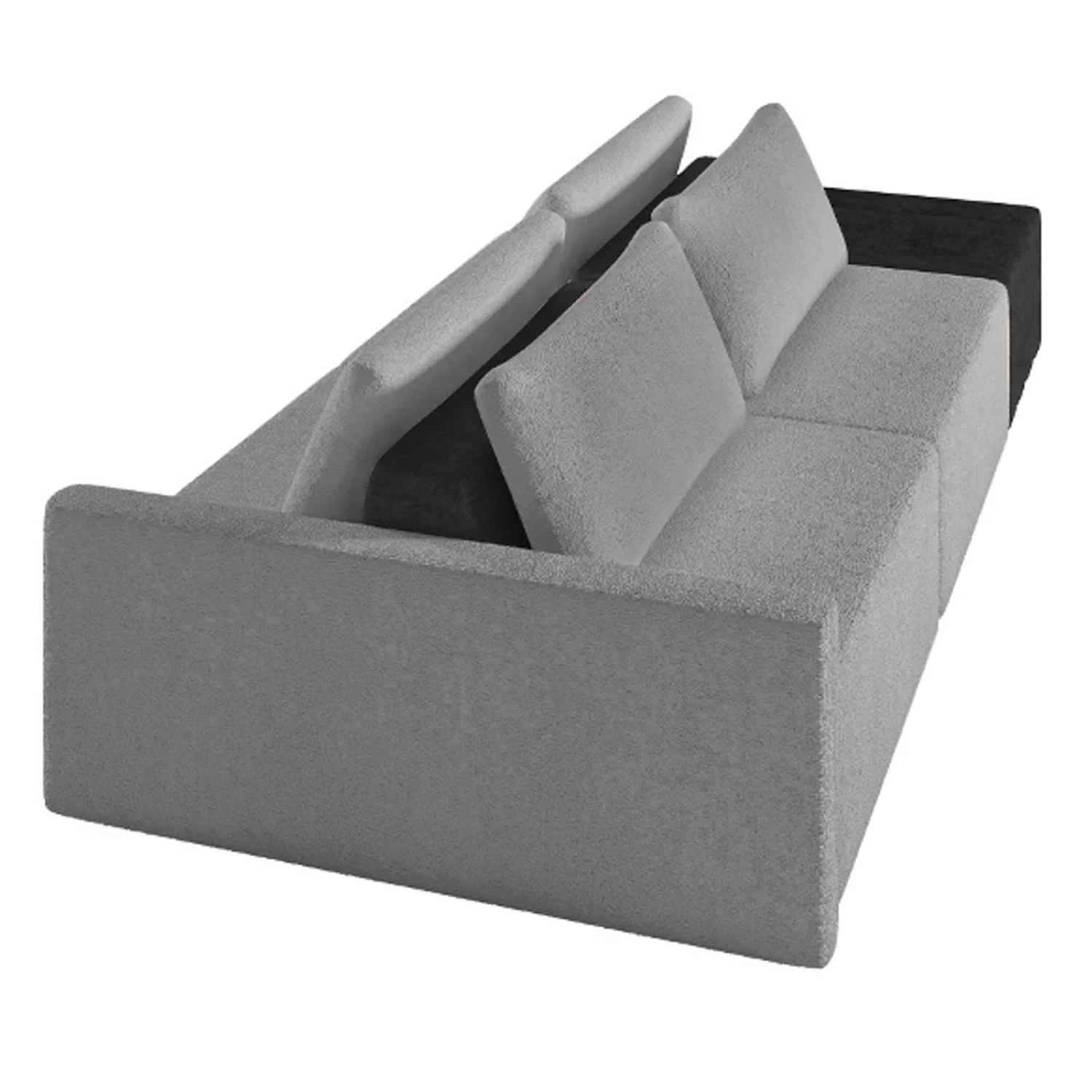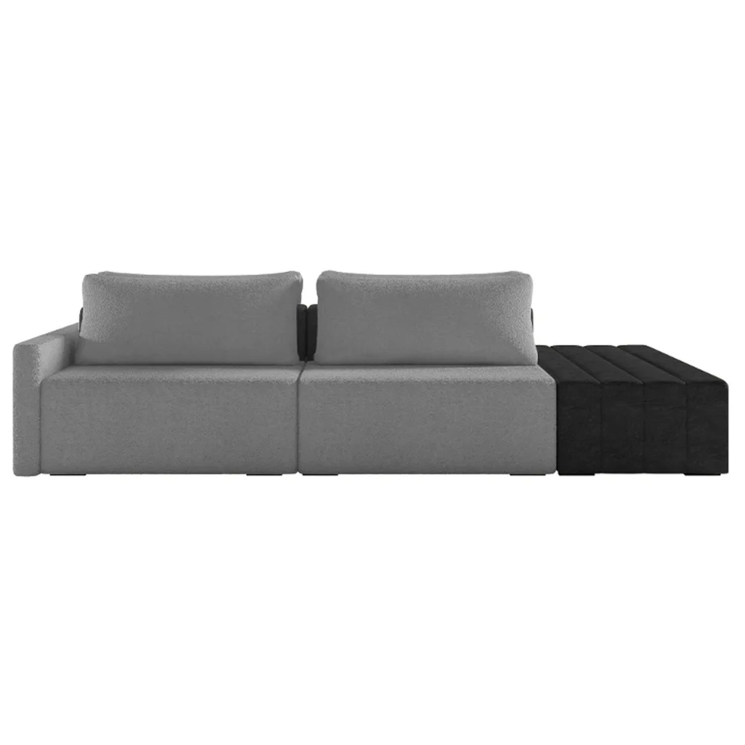 Eleve seu espaço de convivência a novos patamares de luxo com o Sofá Ilha Modular Living com Puff 232cm Georgia Z08 Boucle Grafite/Preto, da Mpozenato!