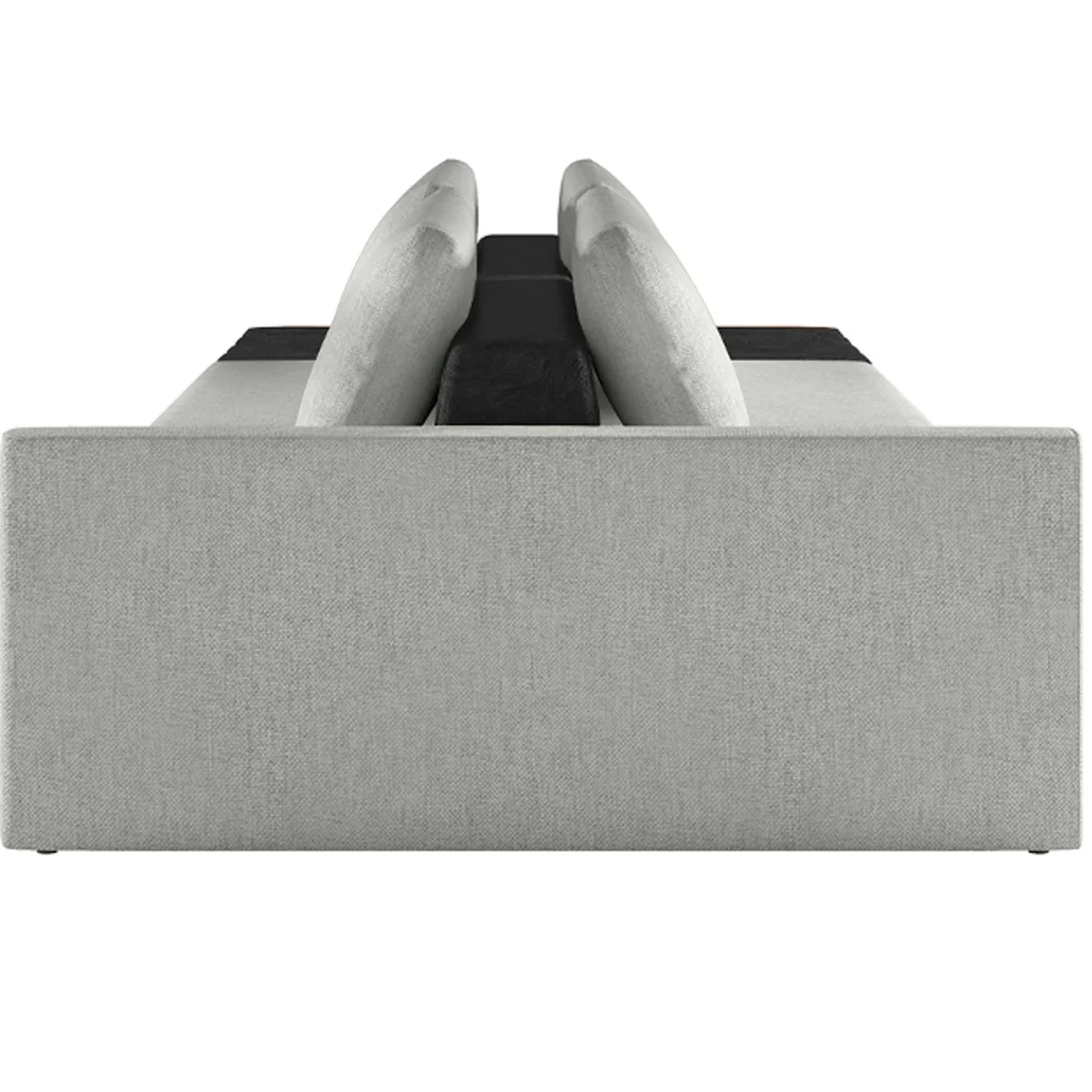 Eleve seu espaço de convivência a novos patamares de luxo com o Sofá Ilha Modular Living com Puff 252cm Georgia Z08 Linho Cinza/Preto, da Mpozenato!
