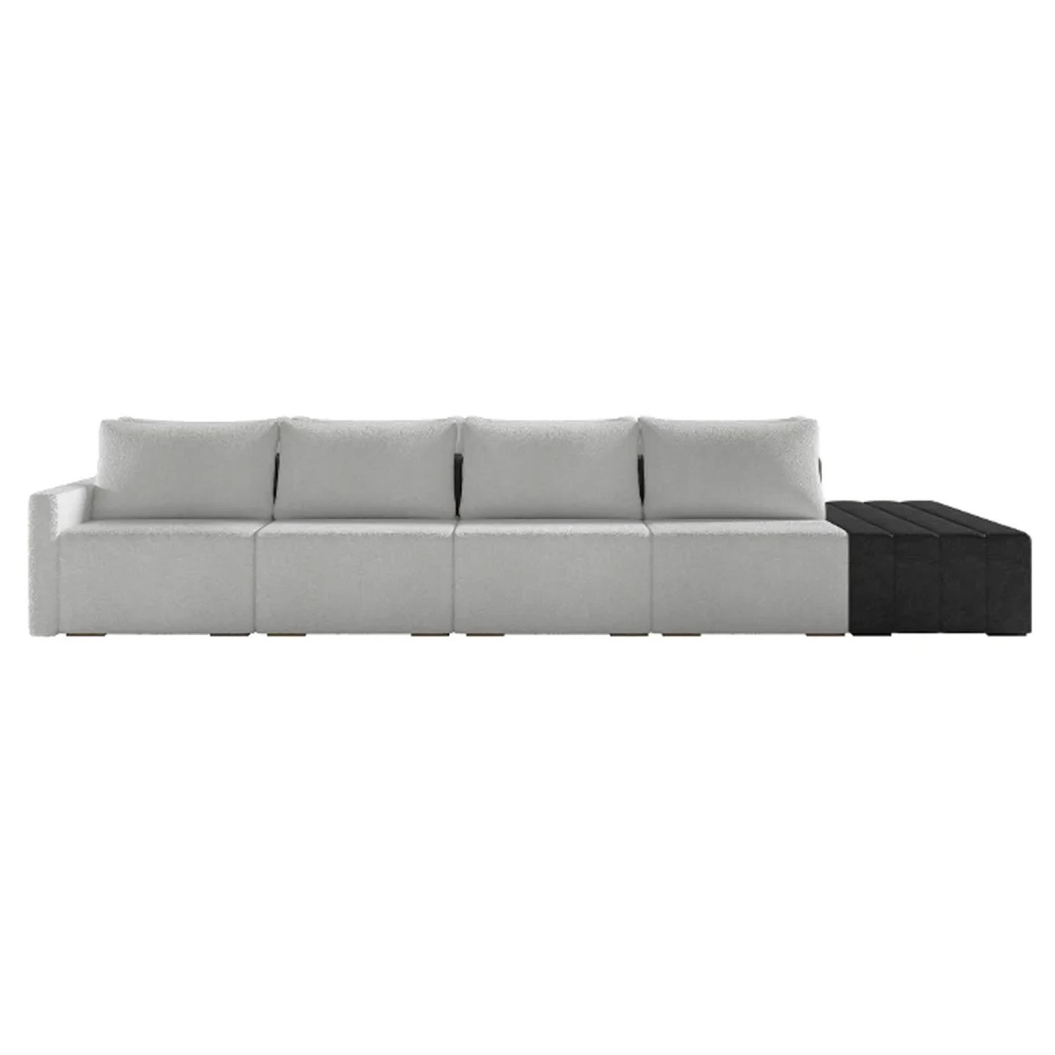 Eleve seu espaço de convivência a novos patamares de luxo com o Sofá Ilha Modular Living com Puff 432cm Georgia Z08 Boucle Cinza/Preto, da Mpozenato!