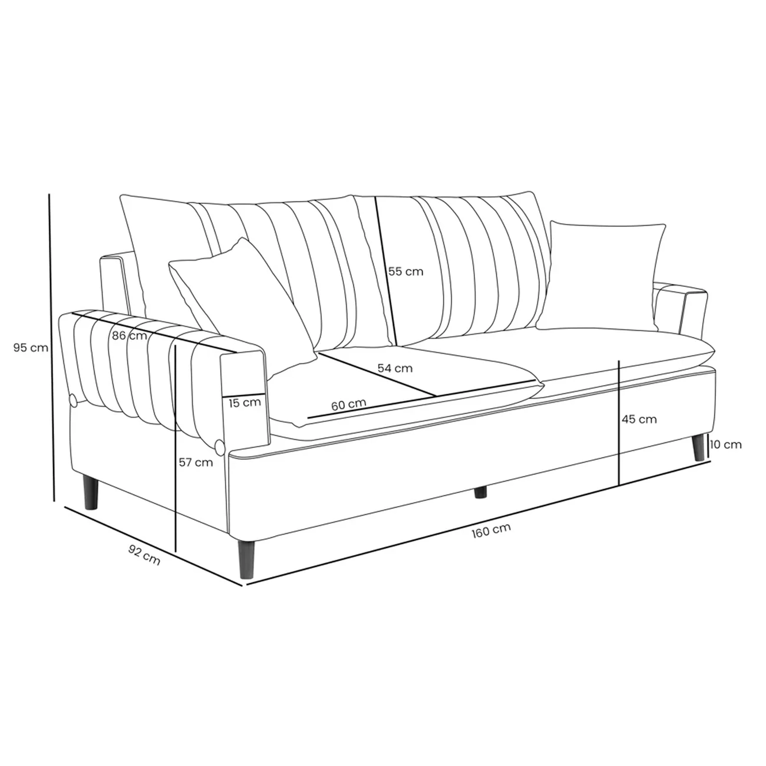 • As dimensões de estofados podem apresentar variação de até 5 cm.