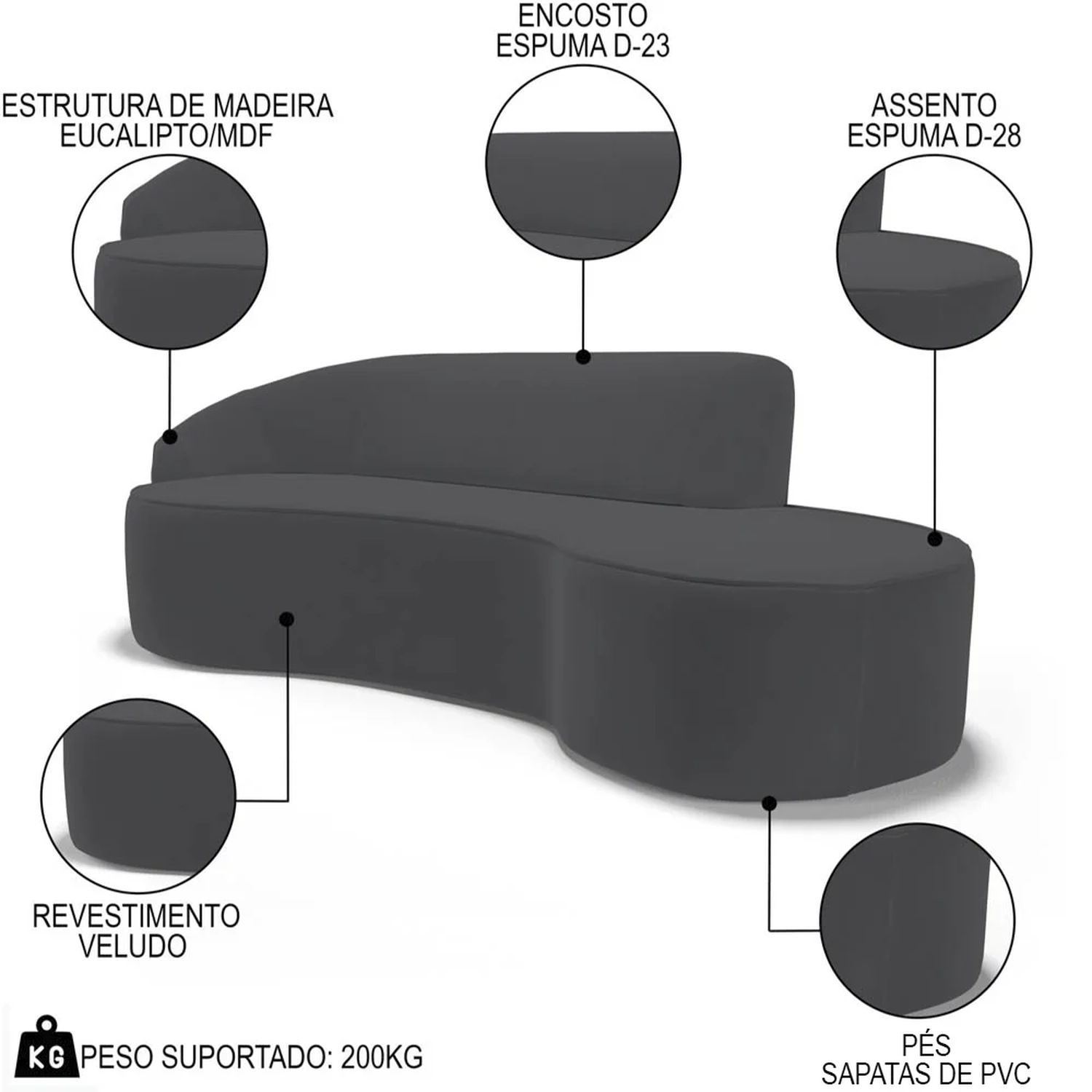 Conheça o Sofá Living 2 Lugares 180cm Braço Esquerdo Mozart D06 Veludo Cinza, da Mpozenato - uma obra-prima de design e conforto que elevará sua sala de estar a novos patamares.