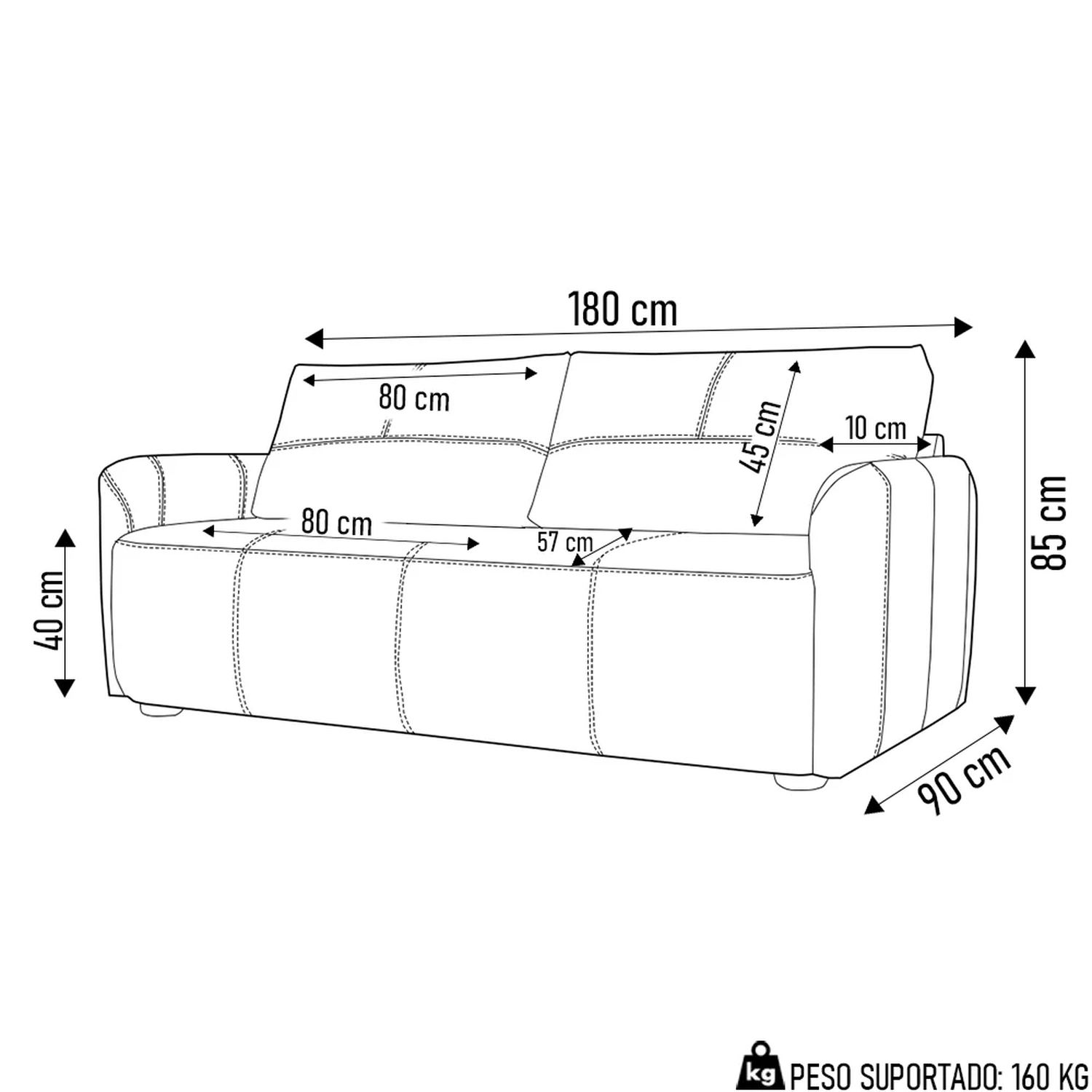 Tipo de Encosto: Fixo/Almofadas Soltas.