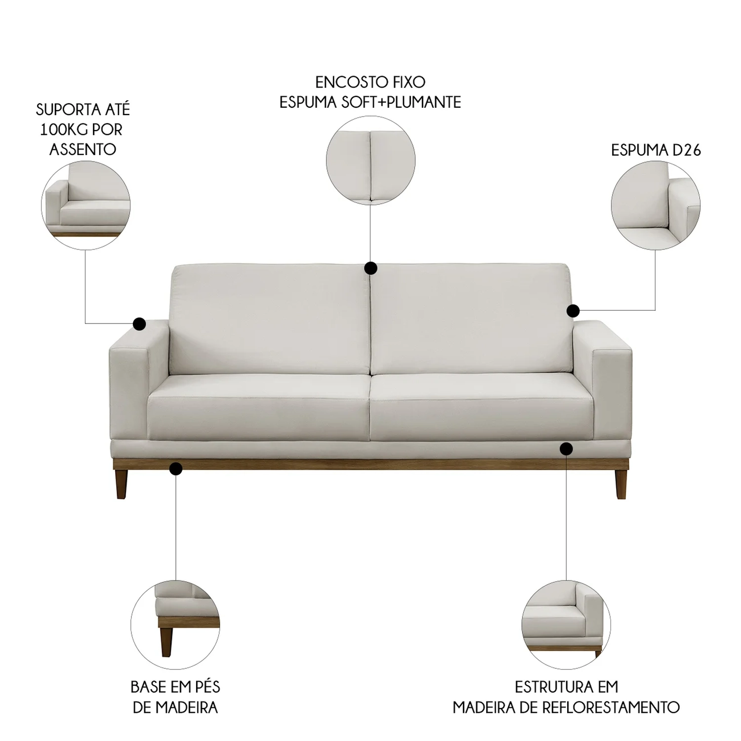 Material do Assento: Espuma D-26 + Plumante.