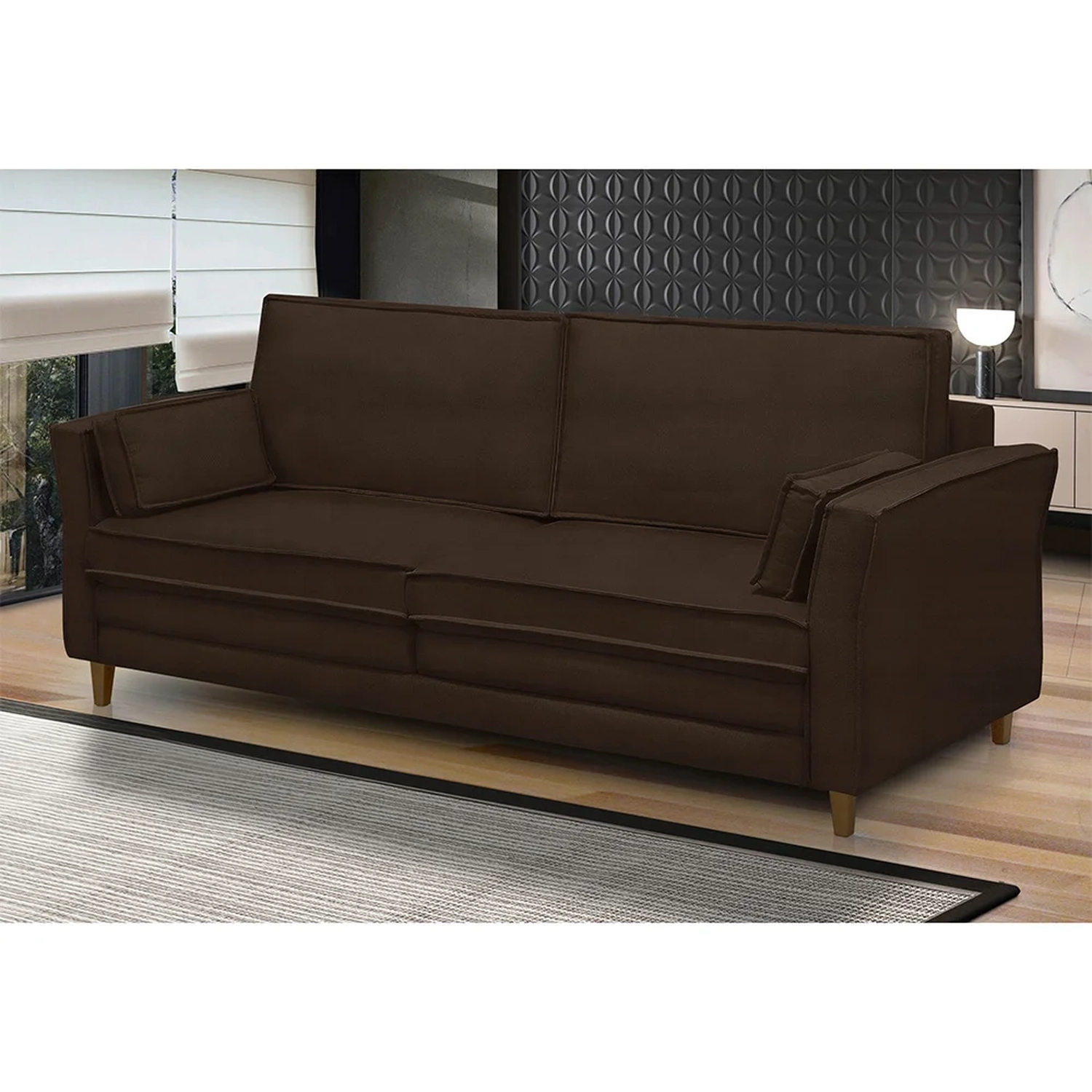 Com estrutura robusta e firme, fabricado com madeira maciça e tapeçaria com espuma de alta densidade, o Sofá Living 3 Lugares 180cm Pés Madeira Efraim F05 Veludo Marrom, da Mpozenato, é o estofado ideal para quem procura conforto aliado ao toque de sofisticação. Vem conferir!