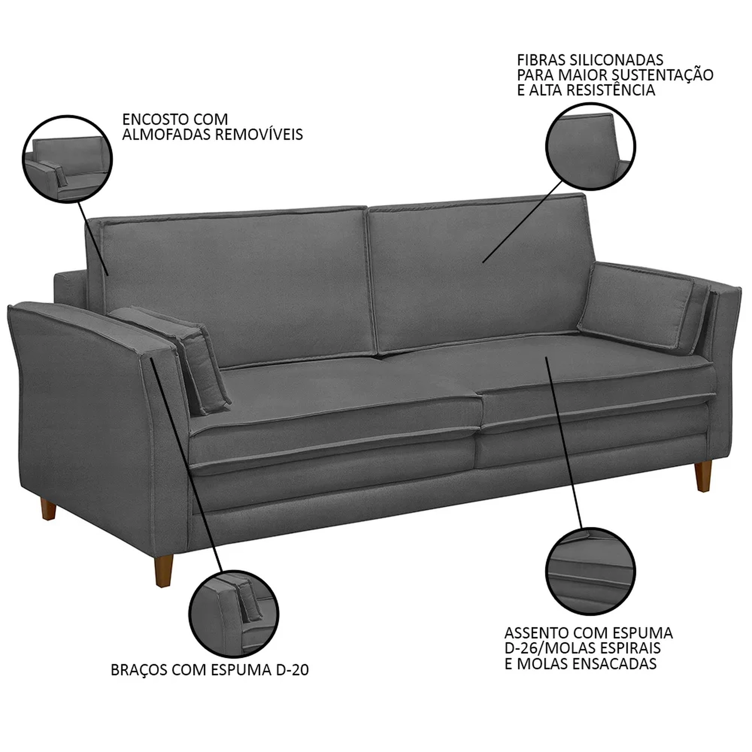 Tipo de Encosto: Almofadas Soltas.