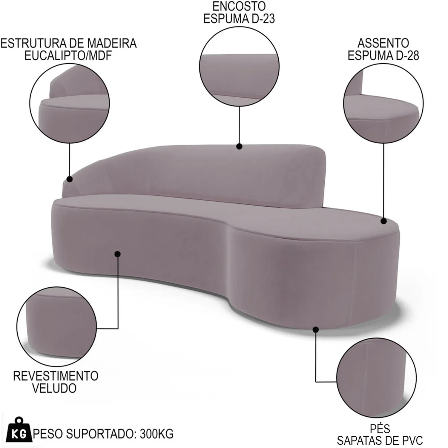 Conheça o Sofá Living 3 Lugares 230cm Braço Esquerdo Mozart D06 Veludo Rosê, da Mpozenato - uma obra-prima de design e conforto que elevará sua sala de estar a novos patamares.